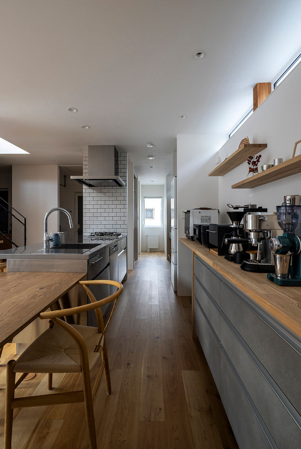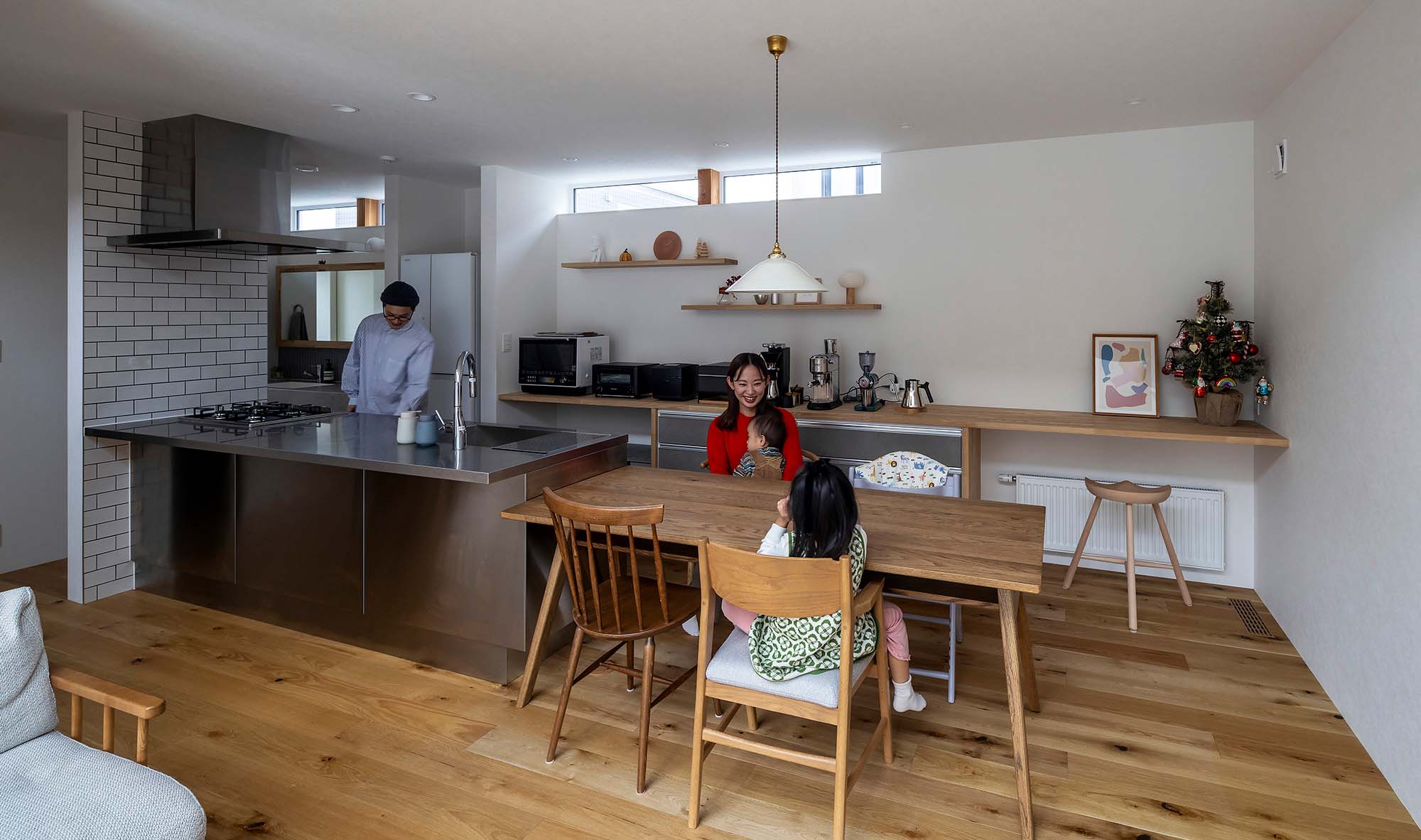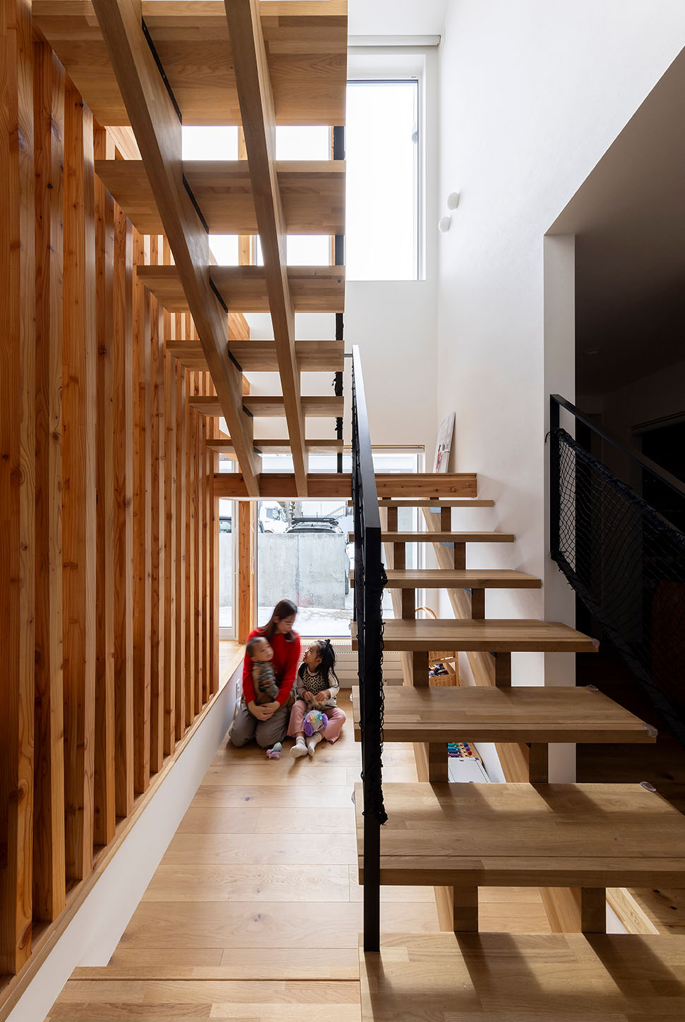 暮らしやすさや快適性は、しっかりとした論理性に基づいた、日常生活を受け止める為の「仕掛け」のデザインがつくり出します。内部空間の家事動線などの工夫も含め、随所に「仕掛け」のある家となりました。