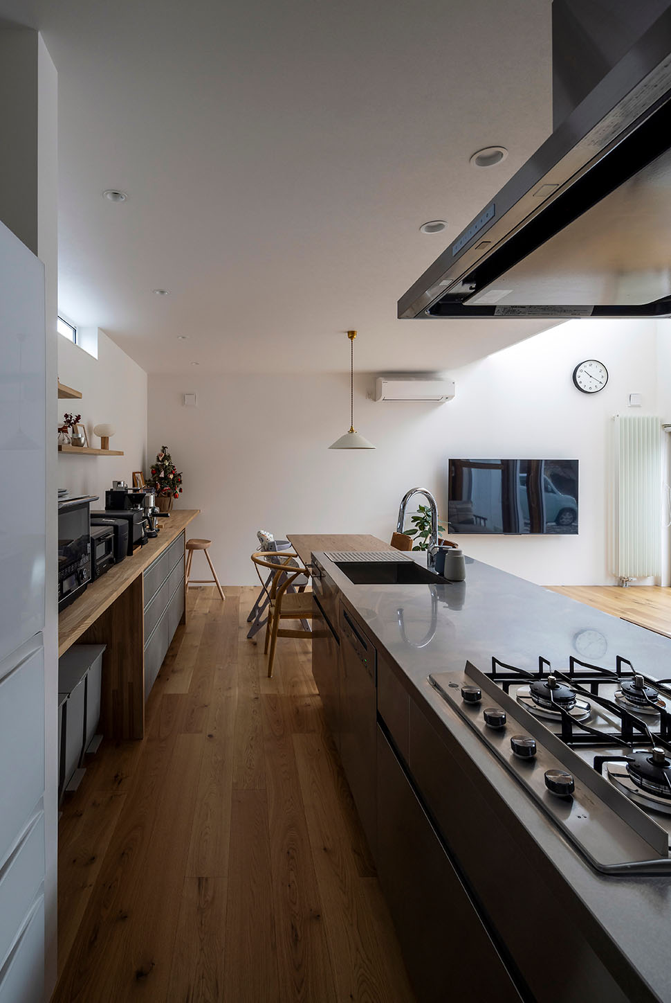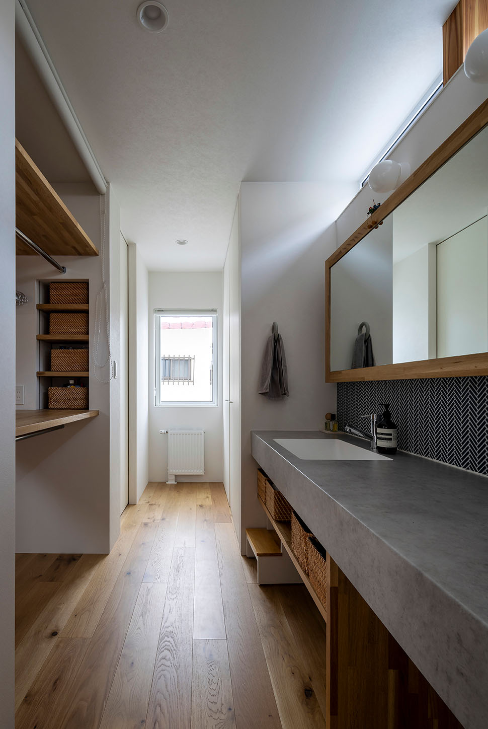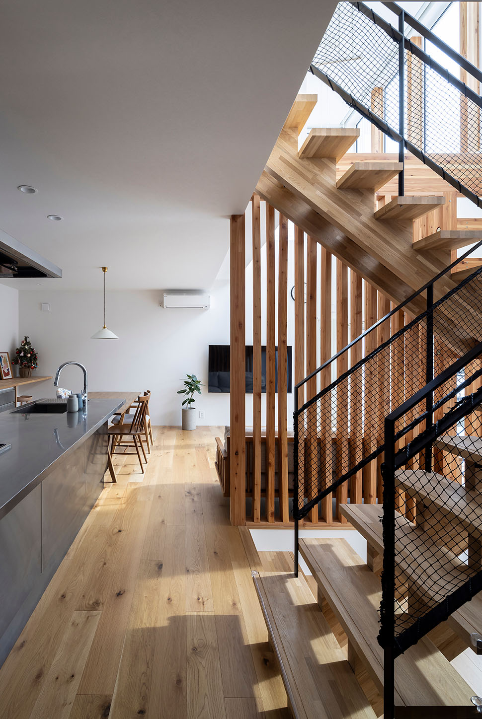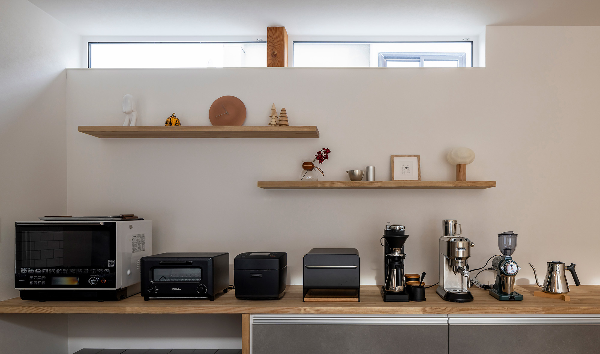 暮らしやすさや快適性は、しっかりとした論理性に基づいた、日常生活を受け止める為の「仕掛け」のデザインがつくり出します。内部空間の家事動線などの工夫も含め、随所に「仕掛け」のある家となりました。