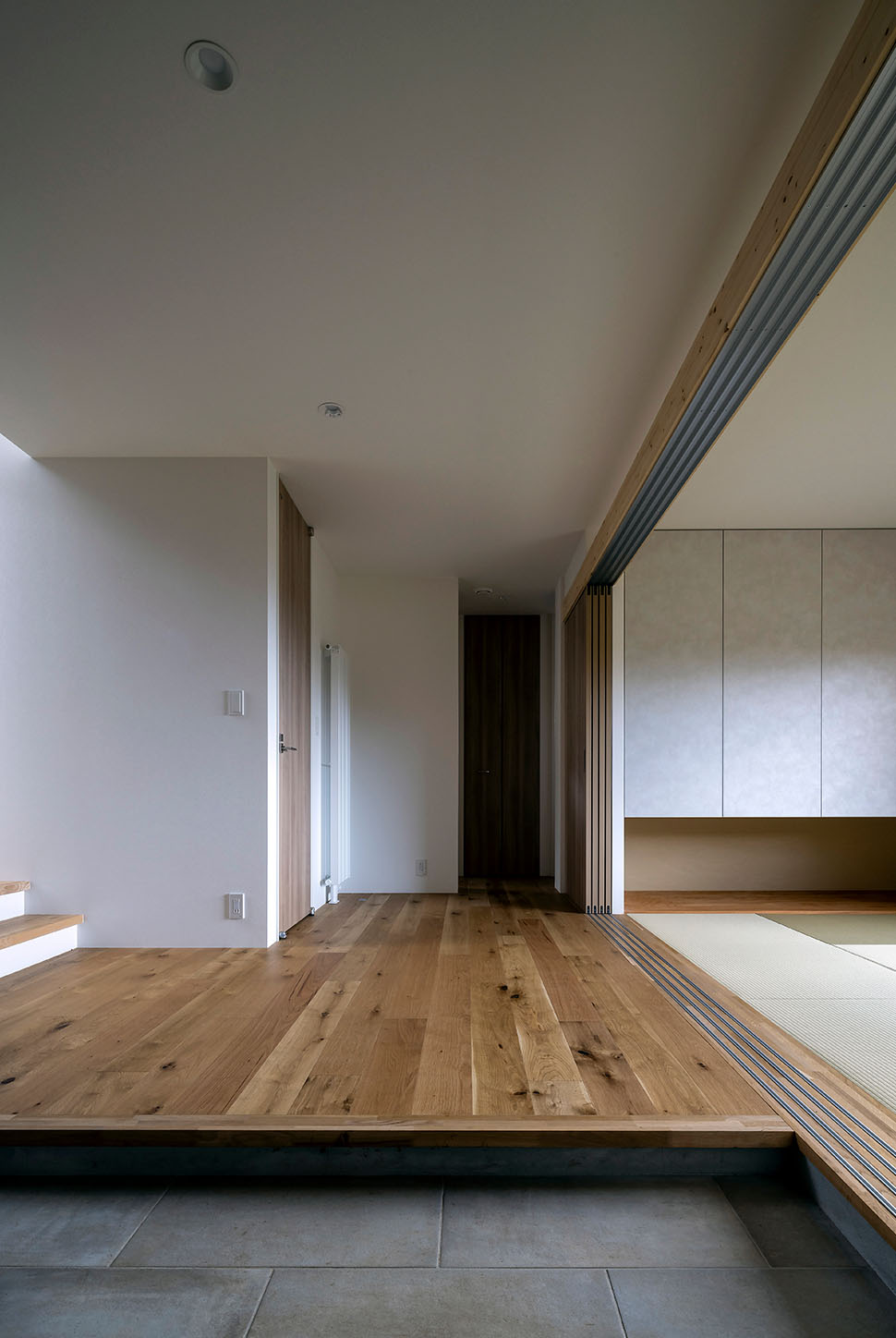 新居は1階に子ども部屋や和室といった個室群を集約。2階に水まわりや寝室、LDKなど暮らしに欠かせない要素をまとめ、上下階の移動の少ない暮らしを実現しています。