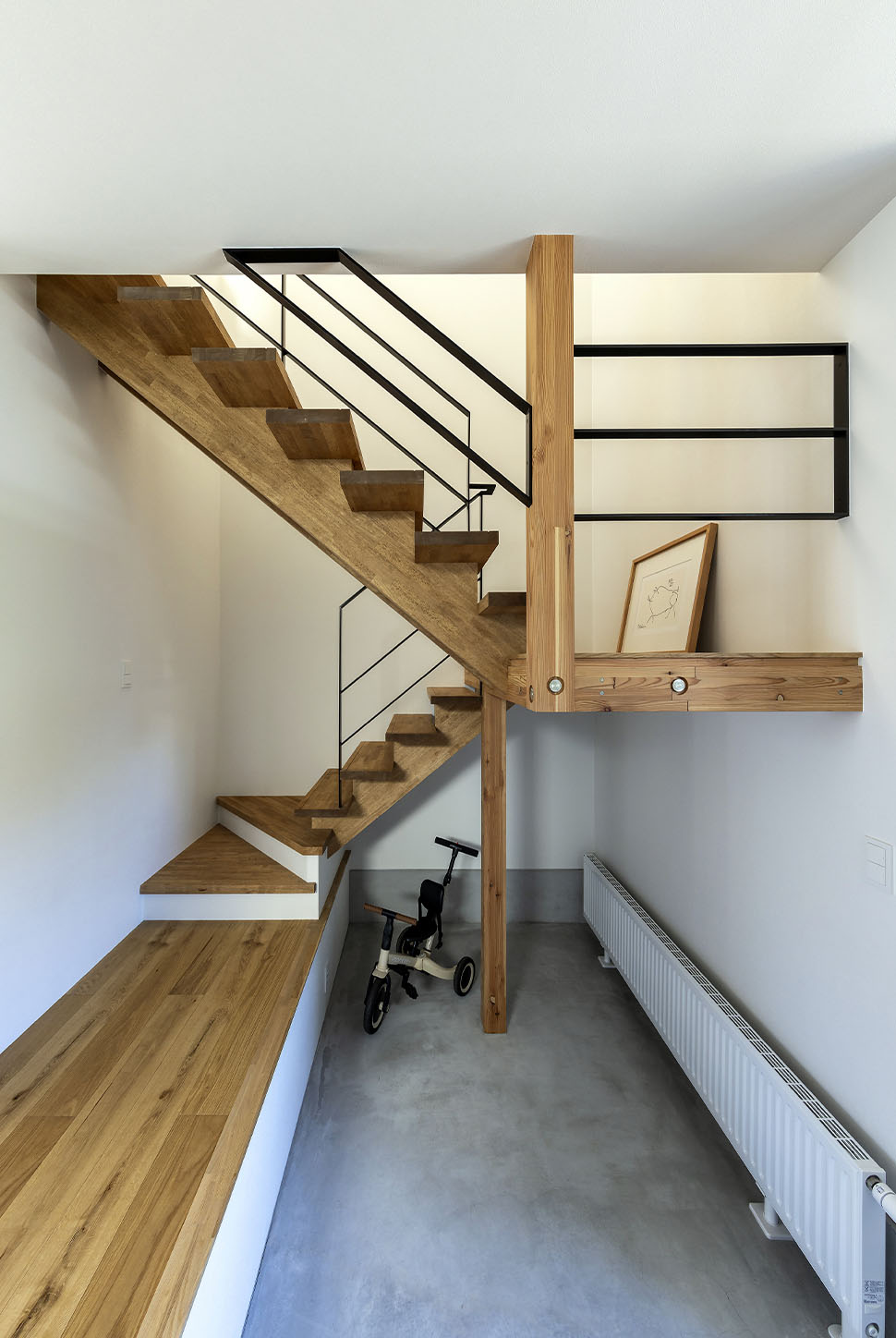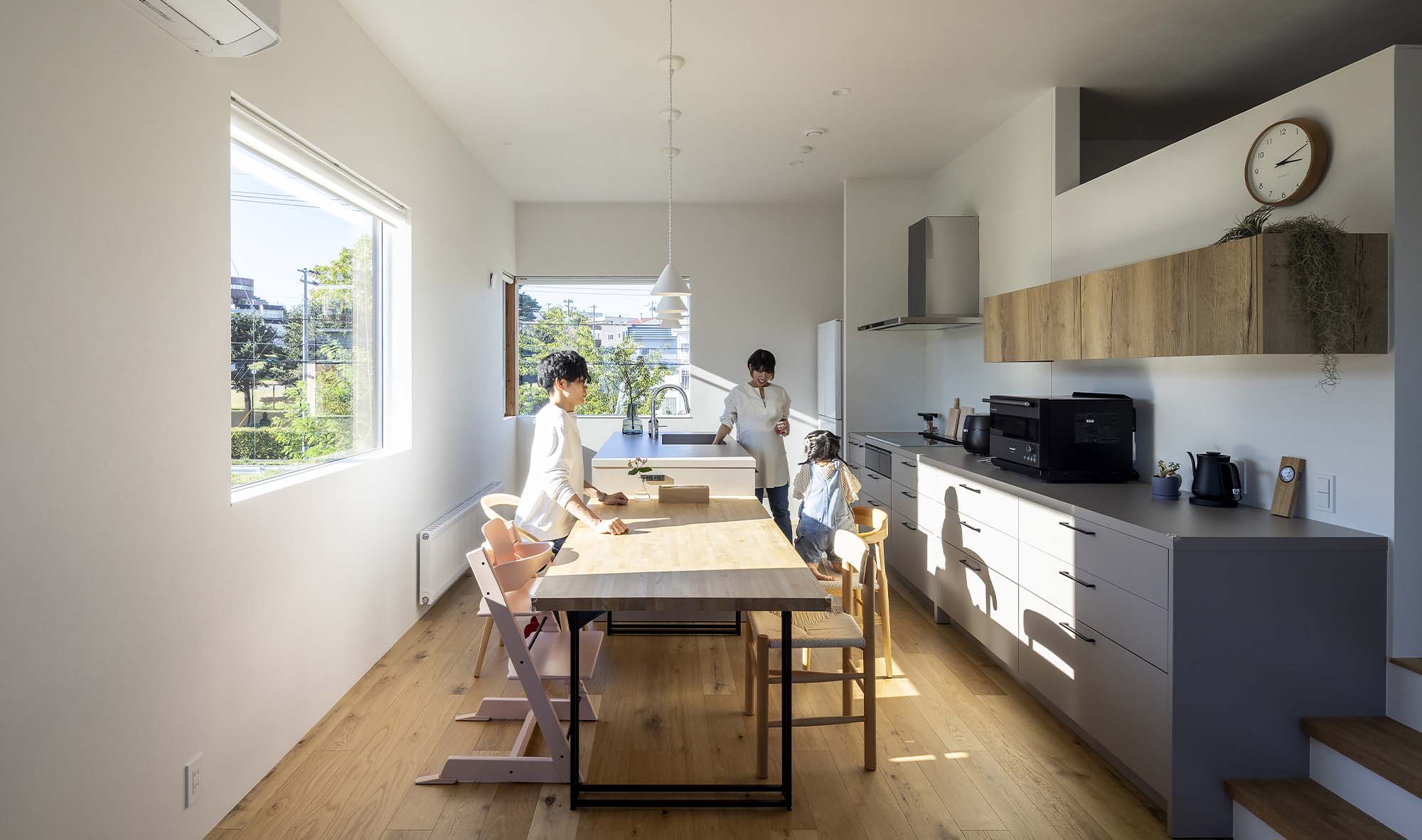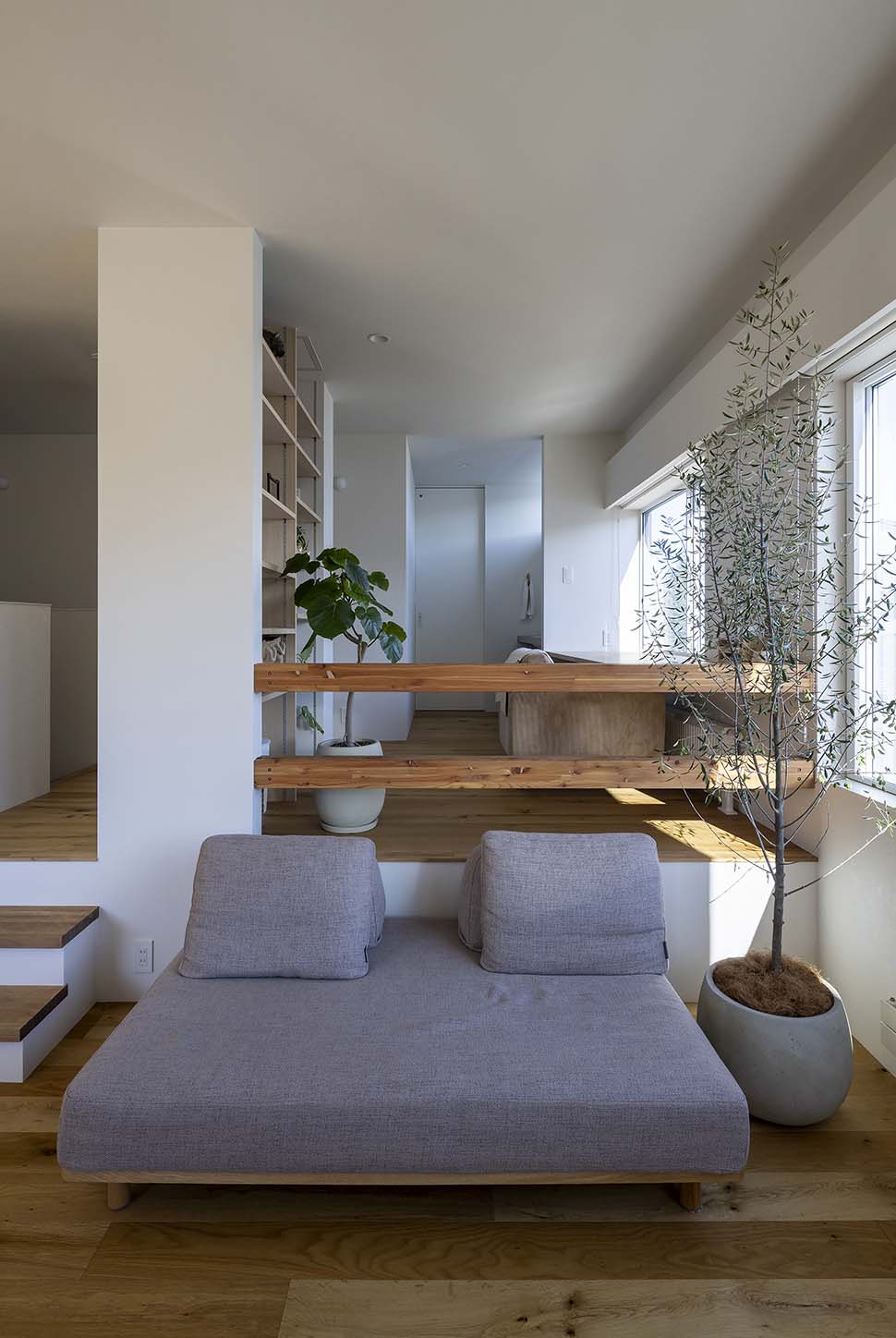 Mさんご一家の住まいが立つのは高低差のある敷地。内部はこの高低差を逆手に取った計画となりました。