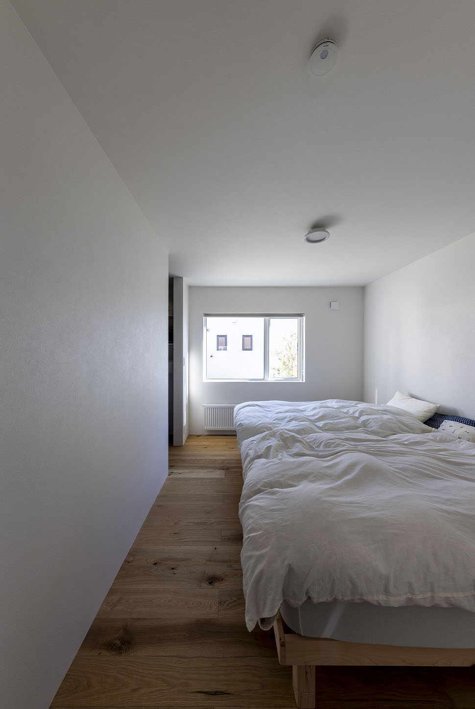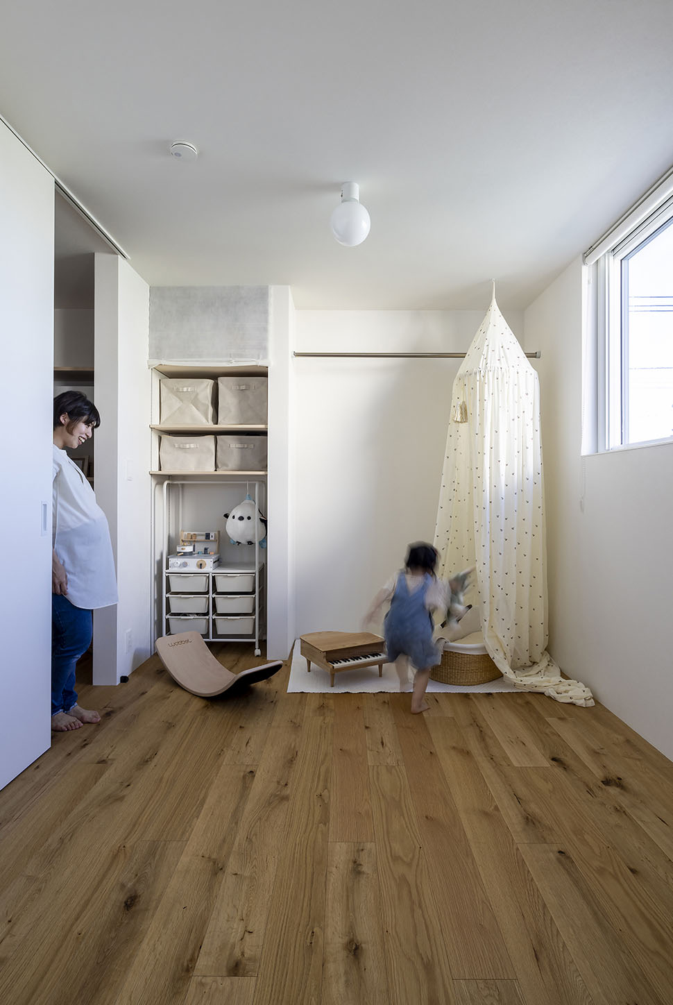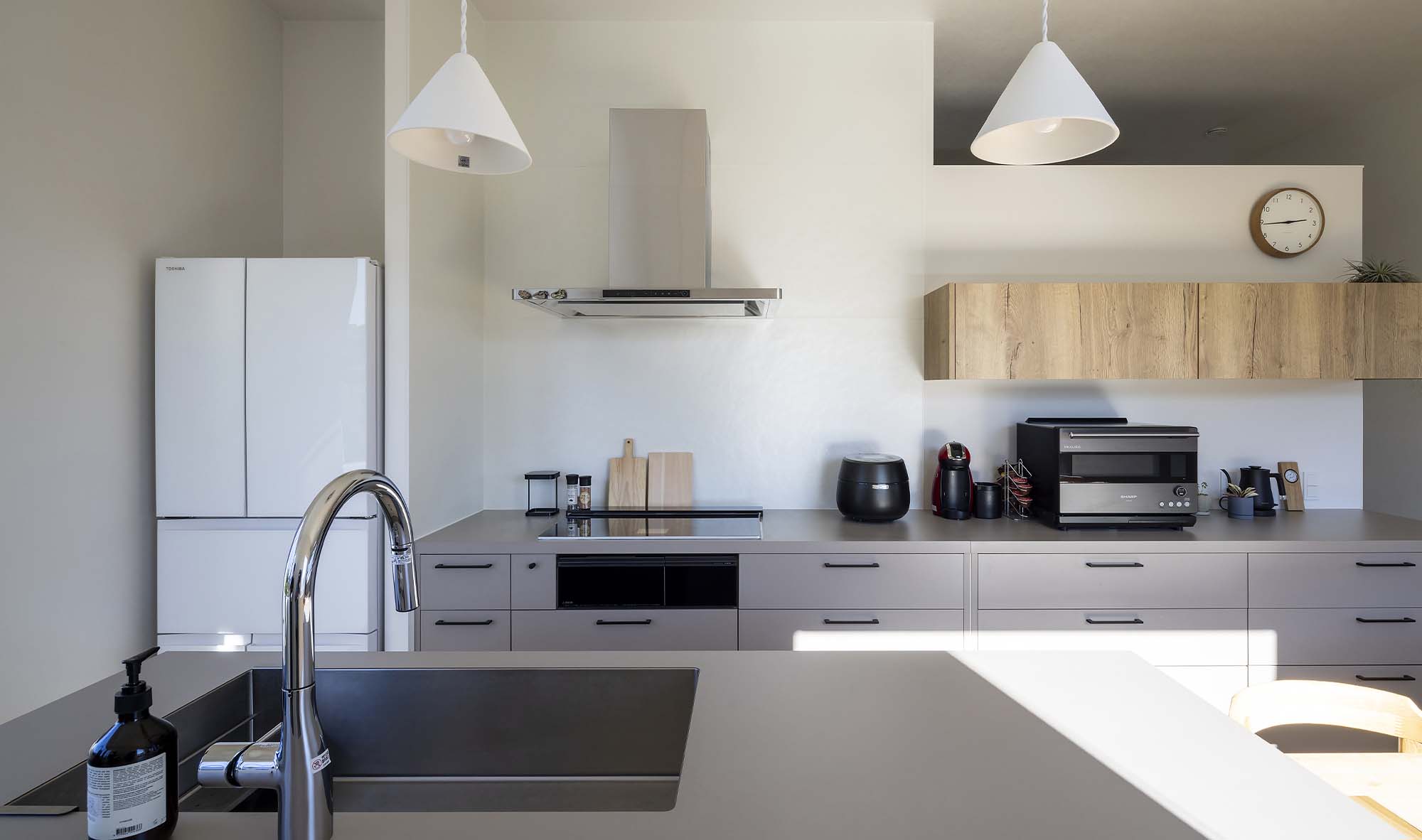 玄関土間とフロアをステップでつないだ室内は、1階に寝室や水まわりなどプライベートを集約し、見晴らしの良い2階にLDKを配置。当初、大きな吹き抜けが欲しいと希望していましたが、土地条件や必要な部屋数の確保を考えると実現が難しかったというMさんご夫妻。しかし検討を重ねる中で見えてきたのは「どうして吹き抜けが欲しいのかと考えたら、それは家族が集う場所が開放的でありたいと考えていたからでした」という心地よさの本質でした。