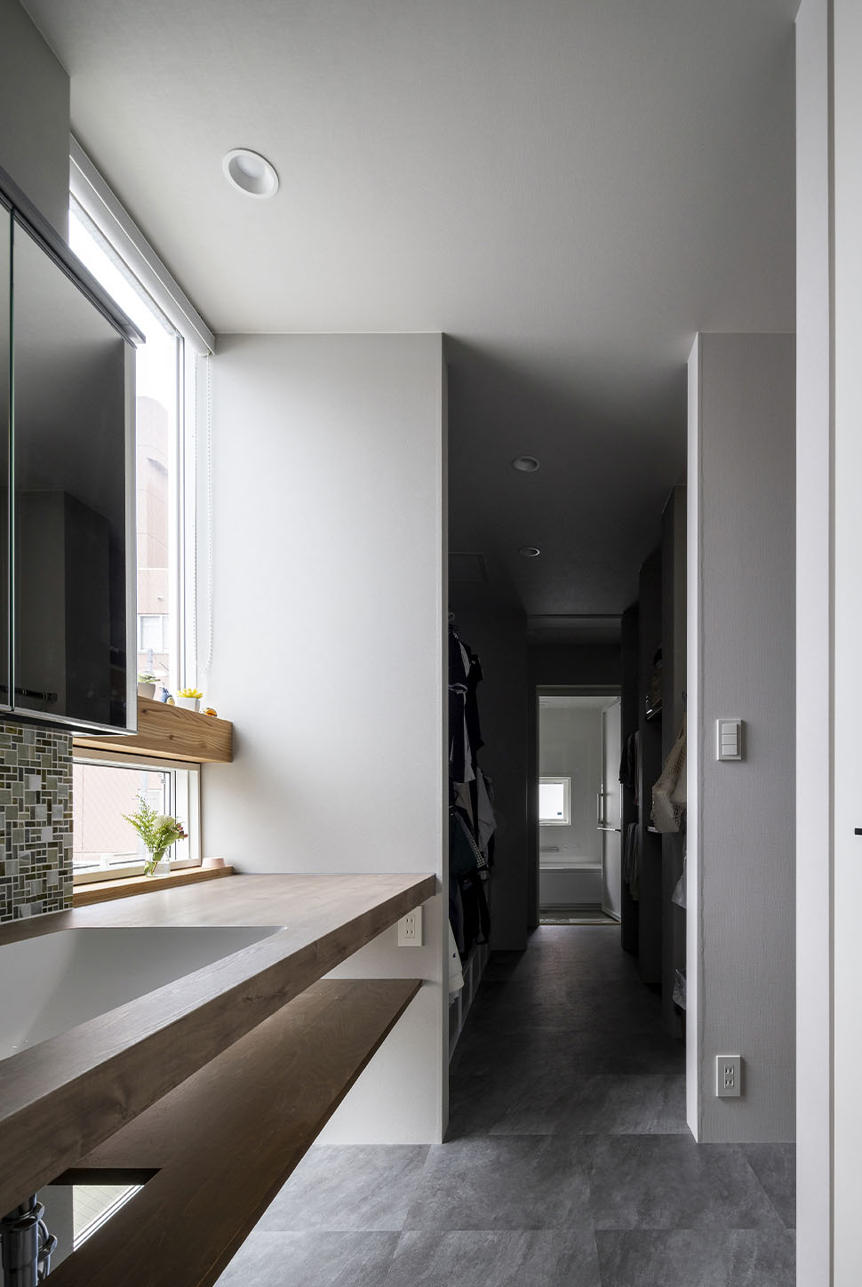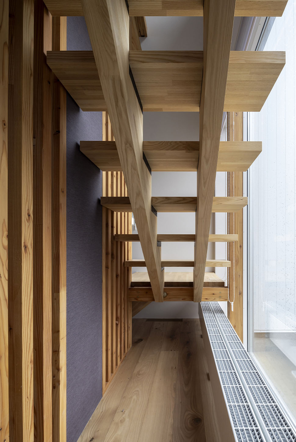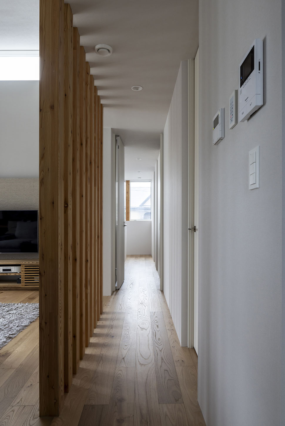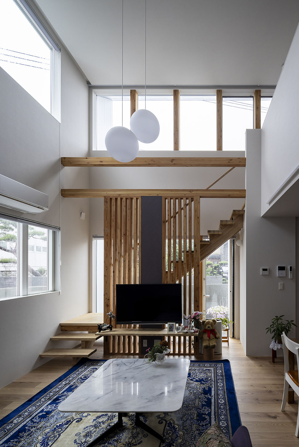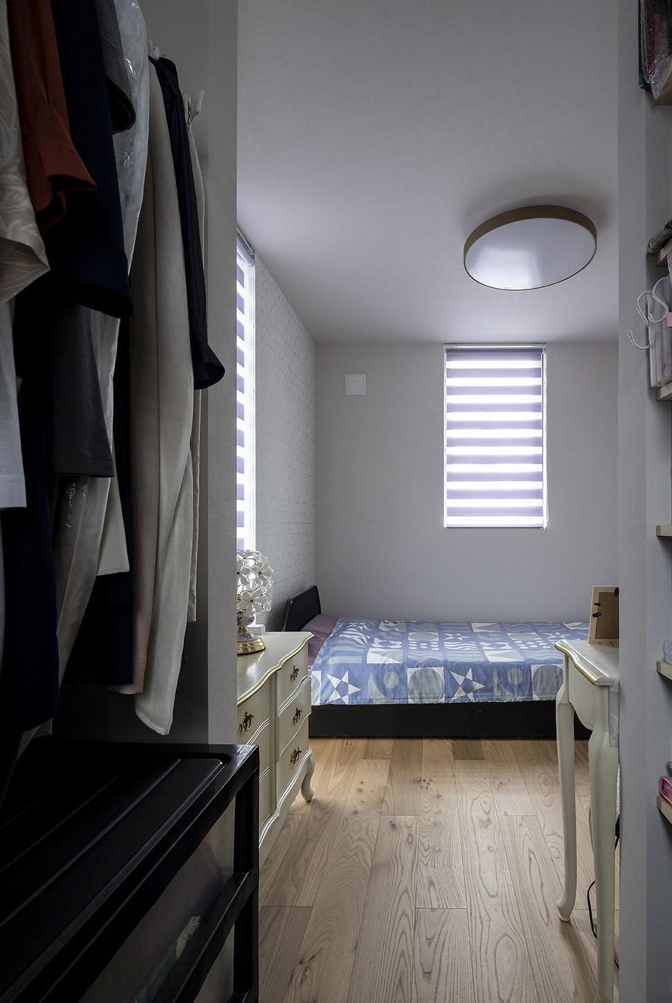 「以前の家では、家族が1階のクローゼットを使わずに帰宅後真っ直ぐに2階に上がるため、コートやかばんが散乱していました」とOさん。この家族の習慣を正すのではなく倣うプランとし、2階に水まわりと合わせてファミリークローゼットを配置。帰宅時の家族の動きがスムーズになり、散らかることがなくなったと言います。「孫や娘が吹き抜けを介して声をかけてくれるのが嬉しいです」とWさん。 程よい距離感の中で、快適な二世帯暮らしを楽しんでいます。