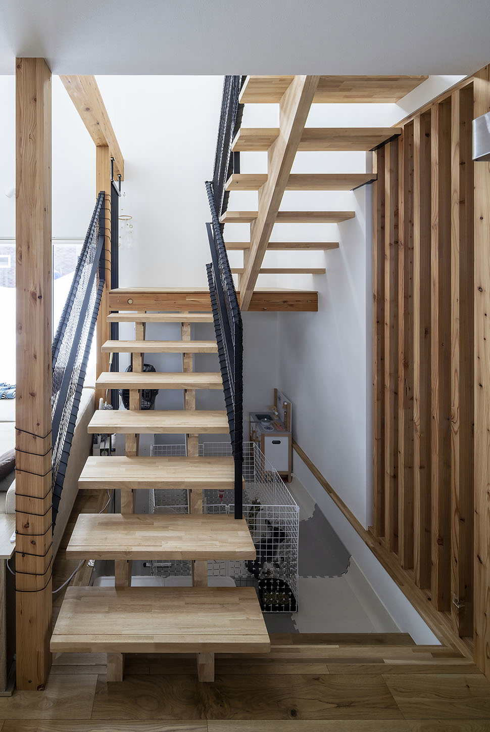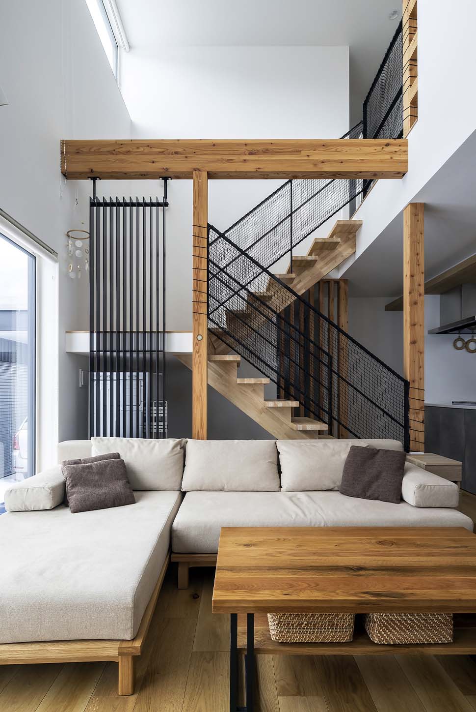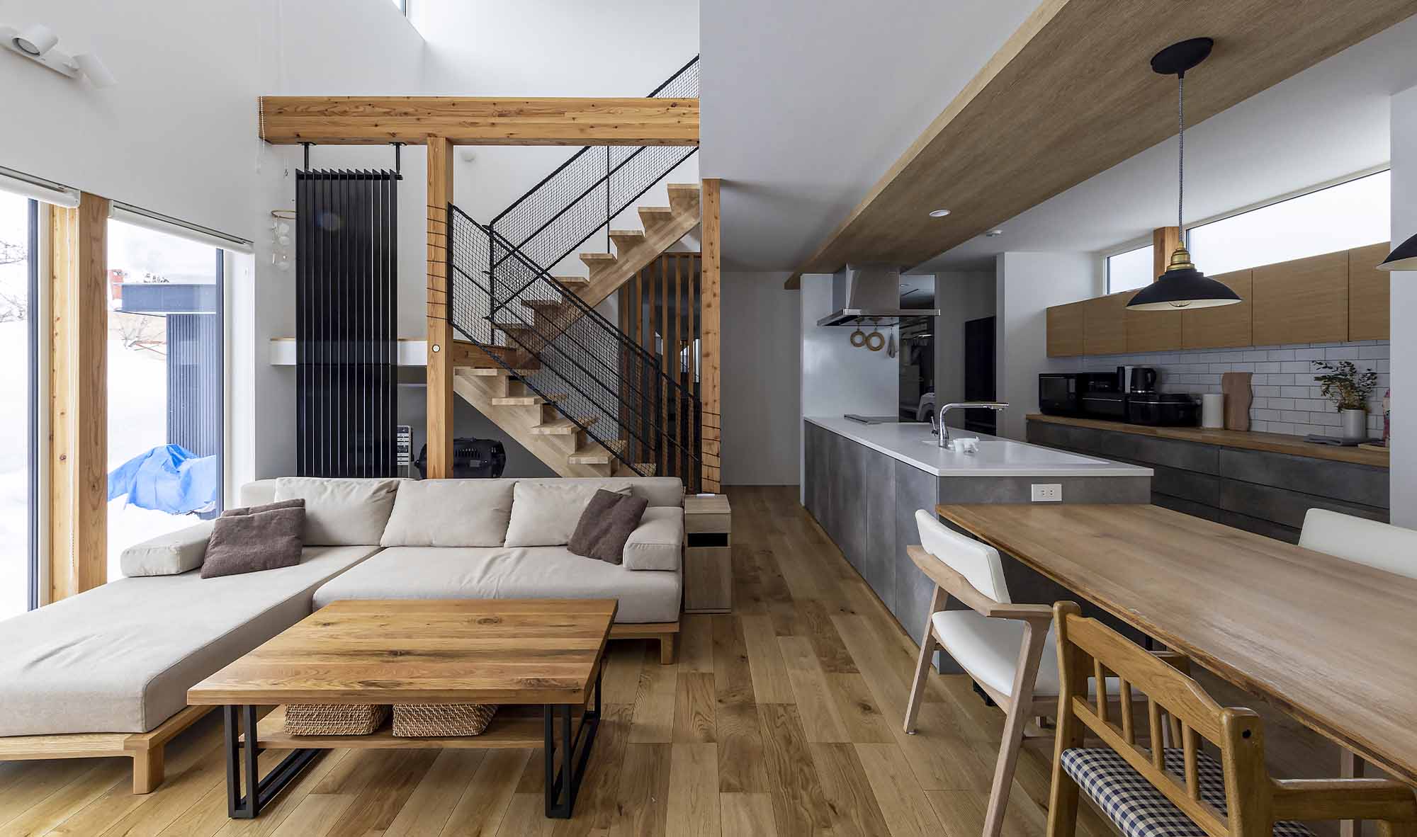 完成した新居は色数を抑えたシンプルな美しさと、日々の暮らしが簡潔になる機能性が同居した効率の良い家。玄関ホールからファミリークローゼット、ユーティリティ、キッチンとつながる回遊式の間取りなど、使い勝手の良さが忙しい日常を優しくアシストしてくれます。「子どもたちが日々伸びやかに家の中を駆け回り、広々としているけれど、日々の動作は簡潔で、私自身も家事の効率が上がりました」と、笑顔で話す奥さんでした。
