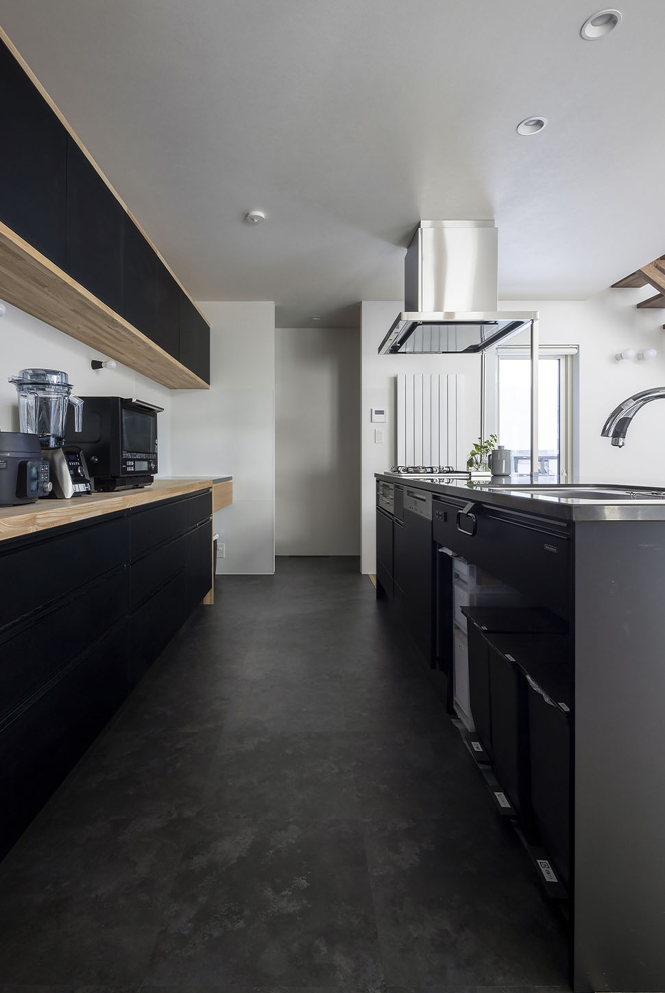 新築の依頼先は、「洗練されたデザインと、木のあたたかさが私たち夫婦のフィーリングにぴったりでした」と住宅展示場のモデルハウスを見て心が固まったというミライエホームに決定。「どこよりも明るい家」をポリシーとしたミライエホームは、光を遮る土地を読み解き、最適なプランを導き出しました。