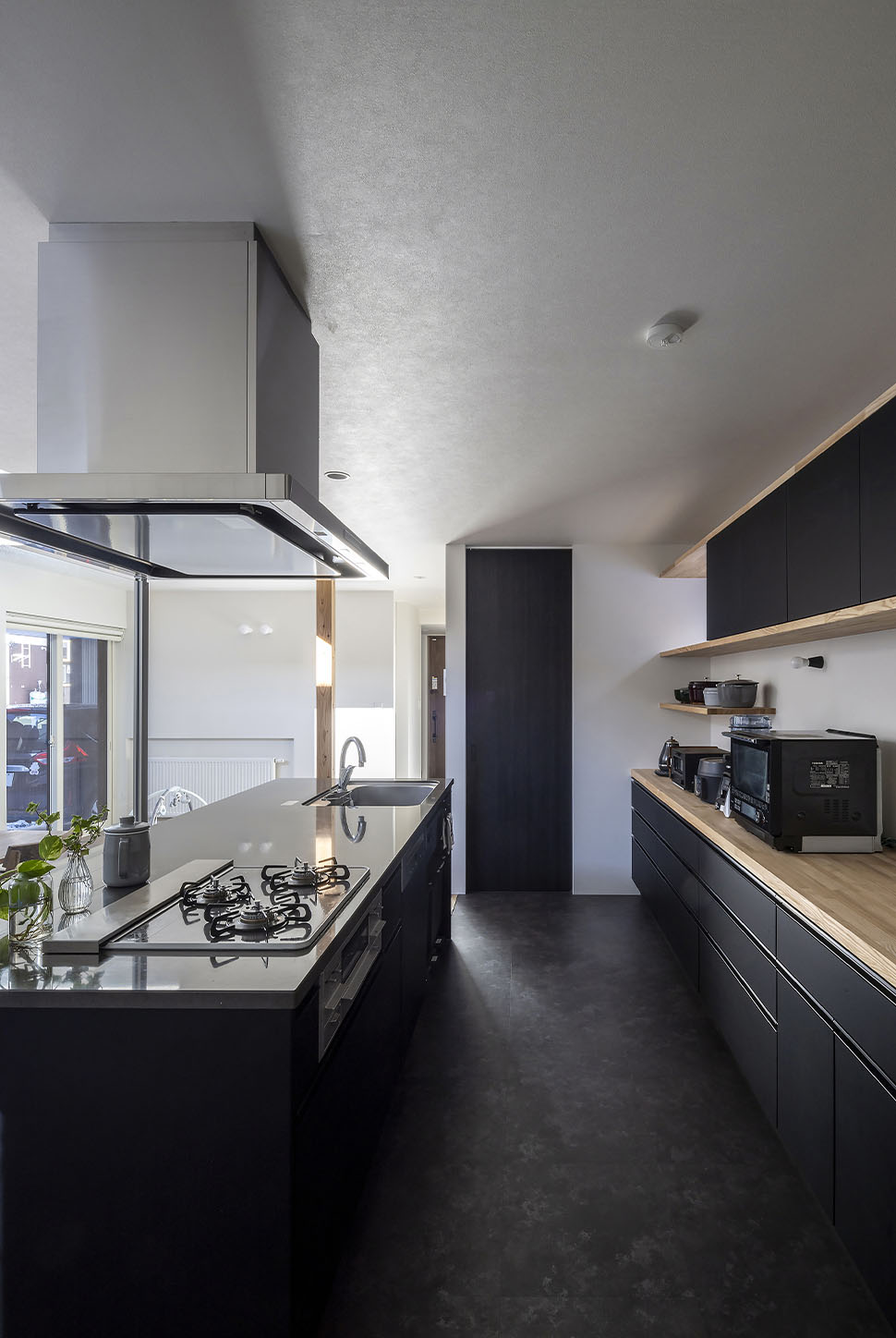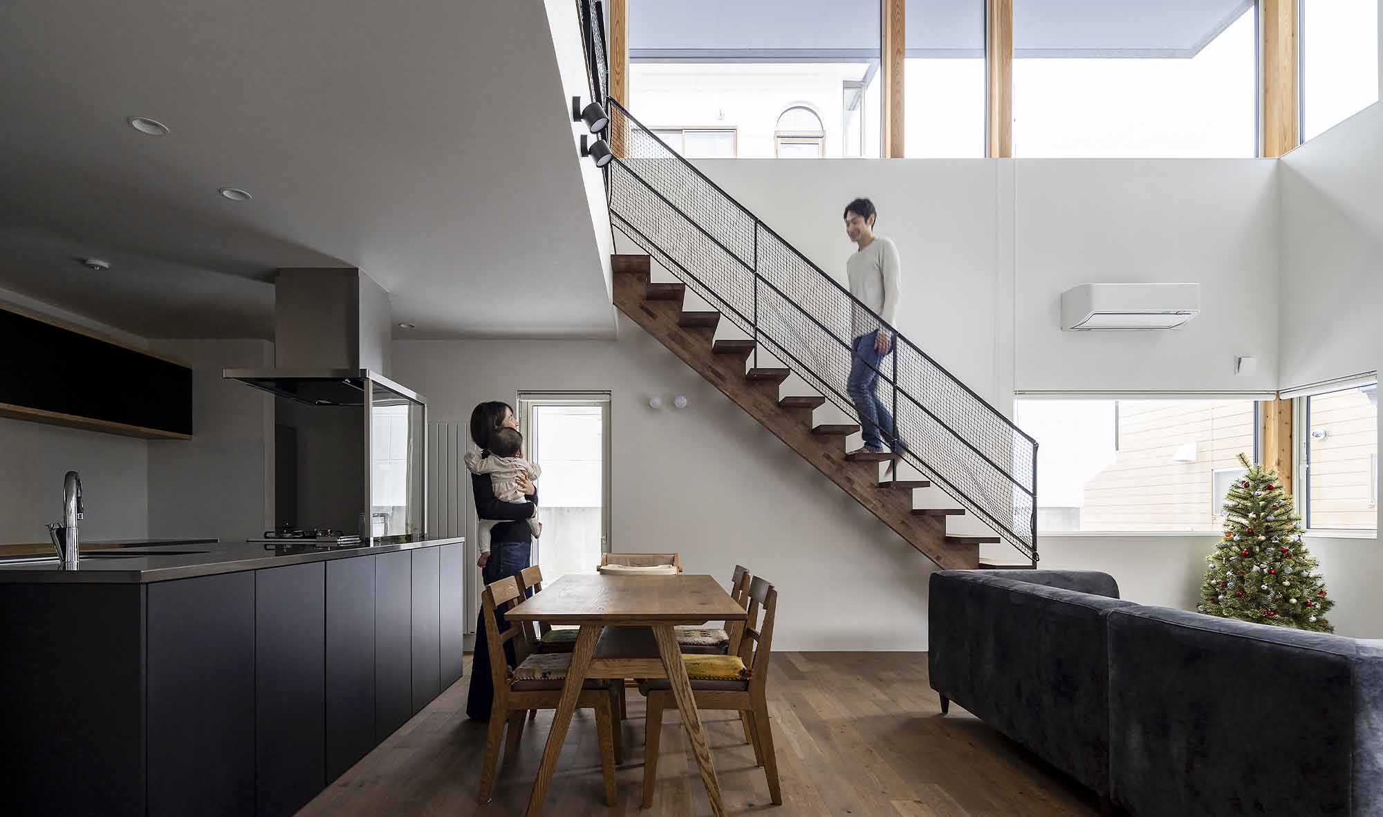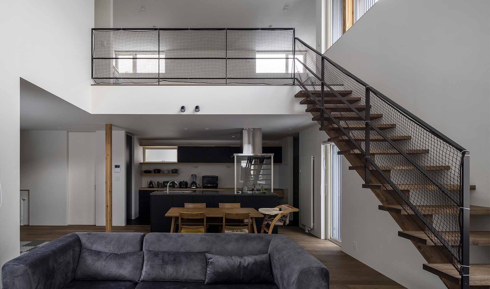 家族がいつもひとつながりの空間で過ごせるように、仕切りを極力省きたいと考えていたIさんにとって、上下階に一体感をもたらすダイナミックな吹き抜けはあつらえ向き。「全く同じ土地なのに、祖父の家とは比べ物にならないくらい明るい家になって、とても驚きました」と奥さん。家族の笑顔が広がる、とびきり明るくて開放的な大空間が実現しました。