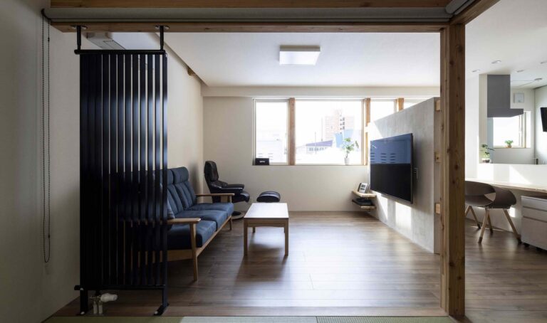 Sさんご一家の旧居は居室が田の字型に並ぶ昭和特有の間取り。庭との間にBBQセットを置くサンルームのような場所があり、リビング横の部屋が着替えや勉強、洗濯物を畳むなど多目的な役割を担っていたりと、古いながらもSさんご一家の暮らしに適した使いやすさがありました。