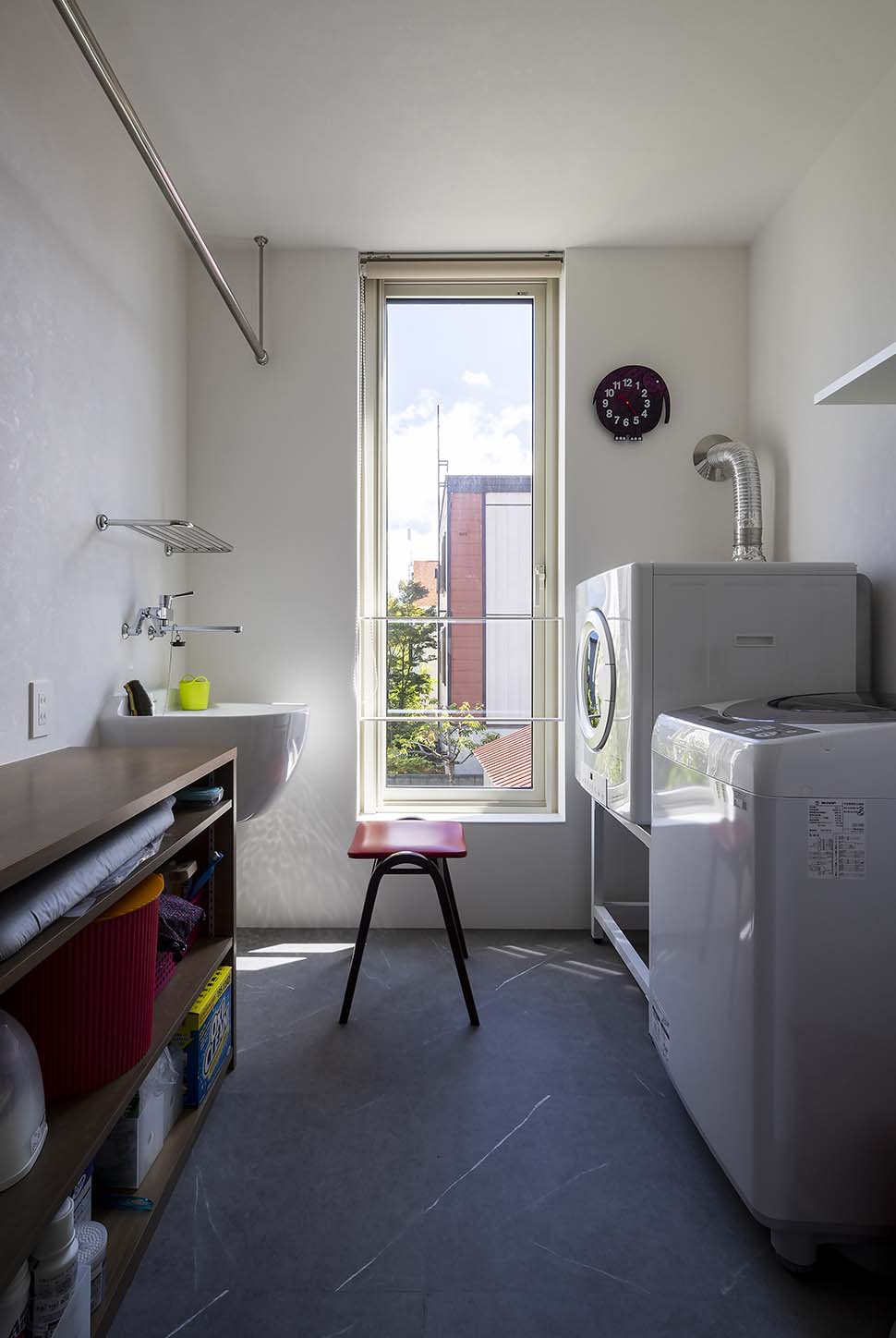 こういう敷地では2階がLDKになるのはほぼ必然で、ご主人がシェフということもあって「屋外テラスで食事」という場面も必然。LDKに面した2階のテラスに屋根を付けて藻岩山に向けた望遠鏡の様にデザインするイメージが、最初から浮かんでいました。