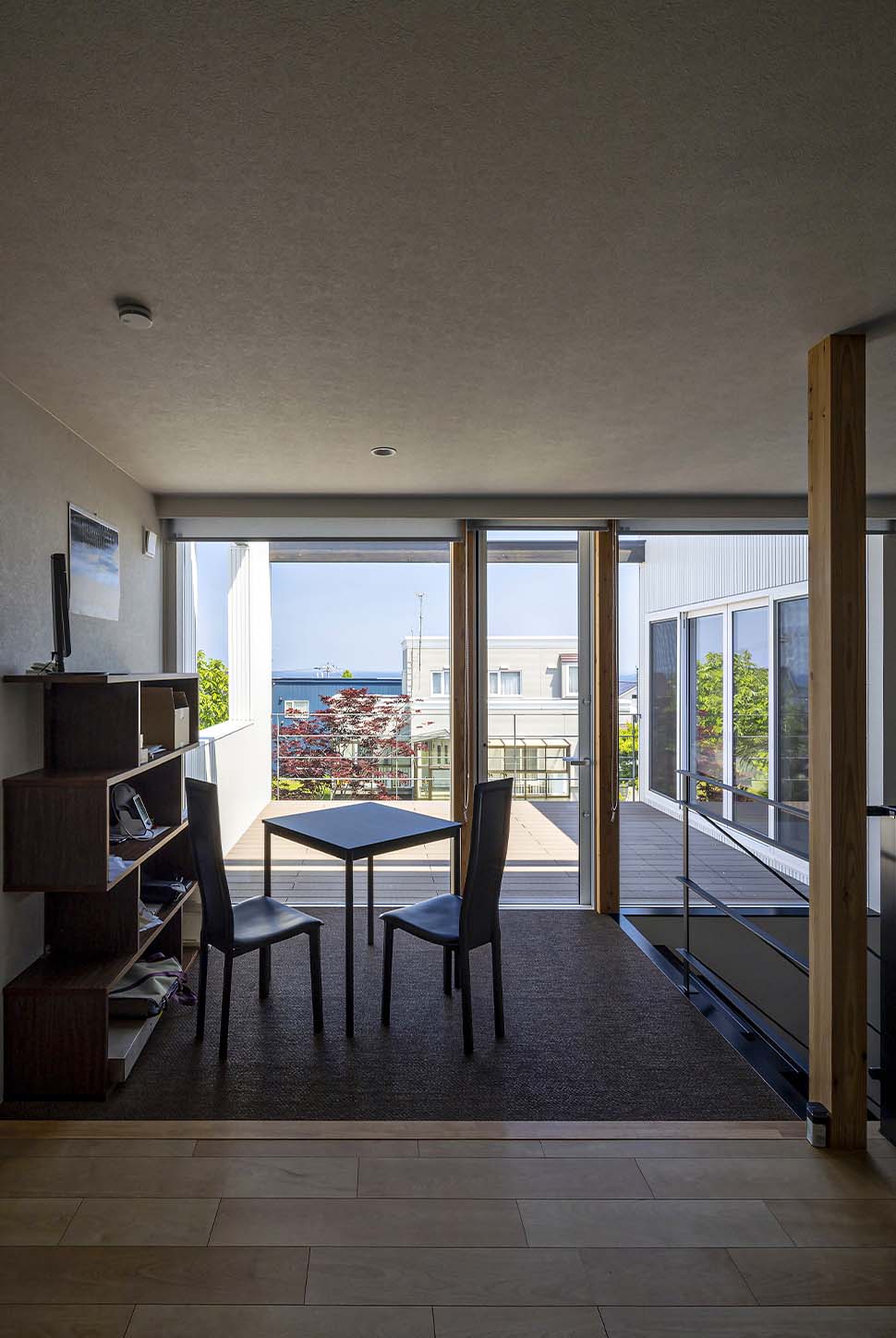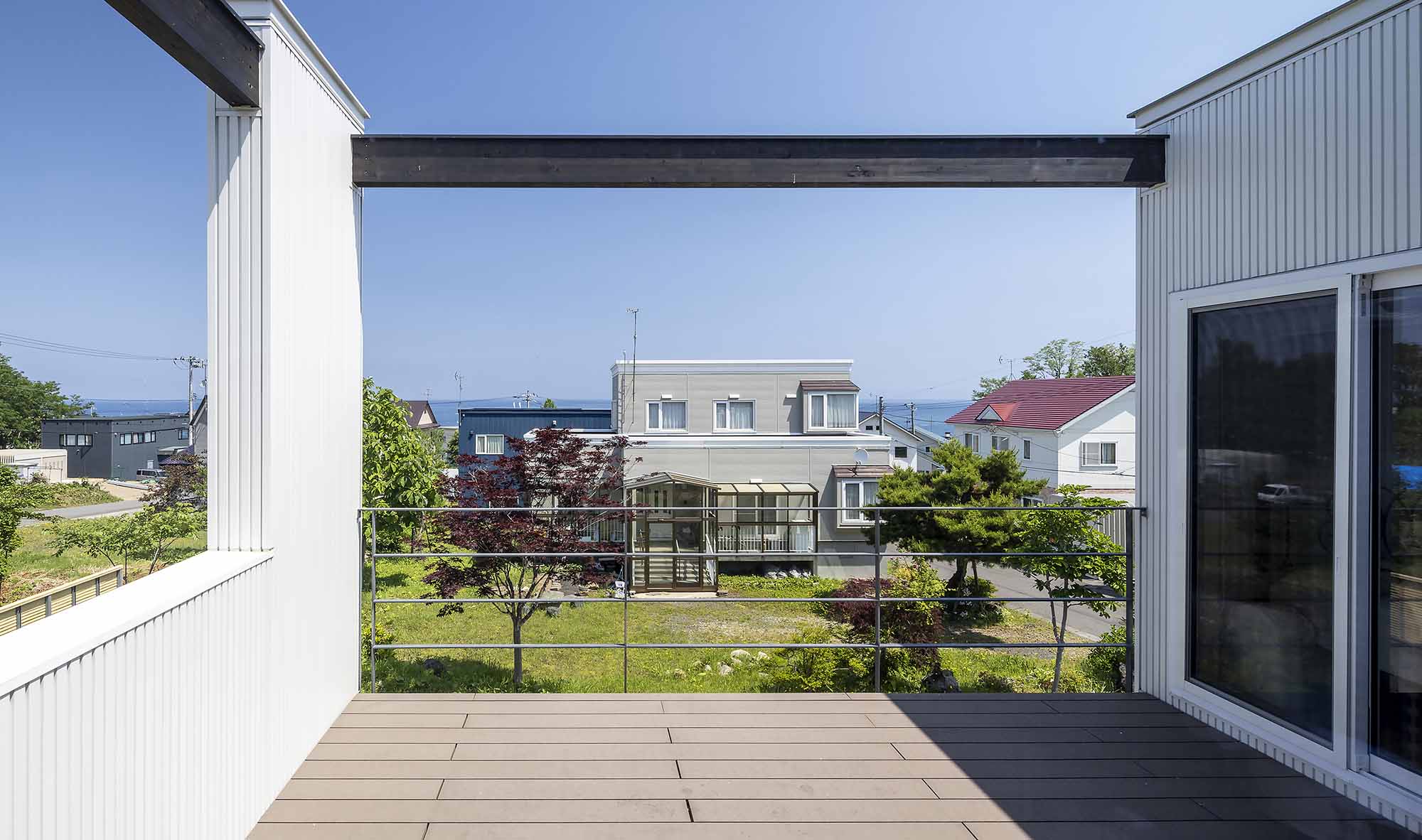 「銭函」と言えば「海」。銭函の敷地に新築住宅となれば、当然に「海の見える家」になるのですが、敷地はそれを標榜するには、周りの家の建ち方も含めて少々厳しい状況でした。しかも、周知の事実で、札幌近郊の海の見える敷地は、ほぼ全て北側が海なので、開口部を大きく取っても南の陽が入るわけではありません。