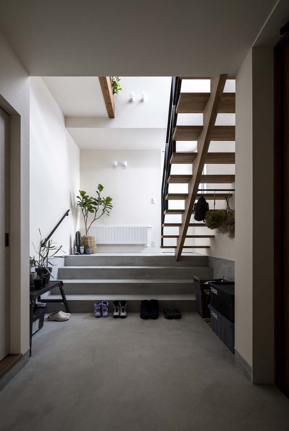 「中庭をコの字型に囲んで、親世帯のリビングを1階に、私たちのリビングを2階に配置すれば、お互いの生活を感じられるという提案を受けて、このような配置・間取りにしました」
