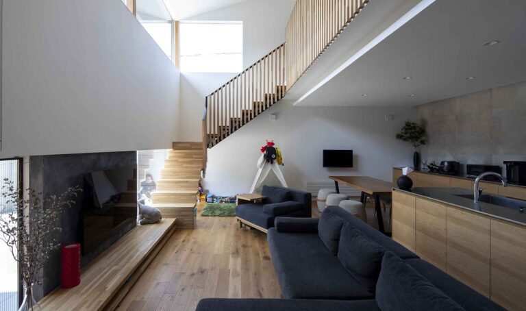 お子さんの誕生という新しい生活の始まりをきっかけに、家づくりを検討し始めたご夫婦。 出会った土地の西側には公園が広がっている。春には桜が咲き夏には水遊びもでき、テニスコートもある。東側の大きな川の支流では、子ども達がザリガニ採りに集まるという絶好の生活環境だ。
