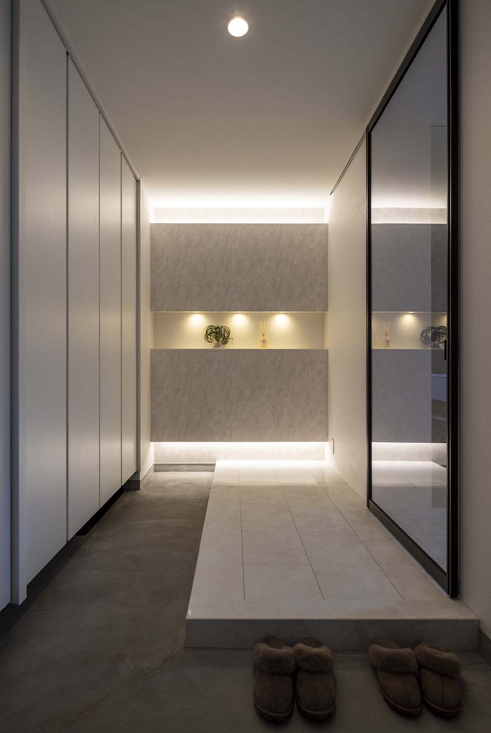 玄関クローゼットにはアウターなど、玄関をあがってすぐのクローゼットには日常的に着回すものと使い分けている。