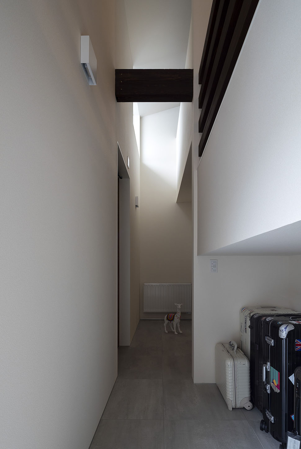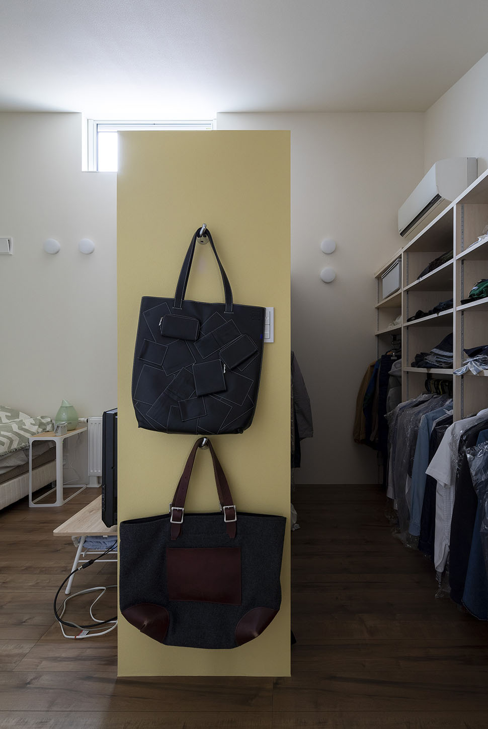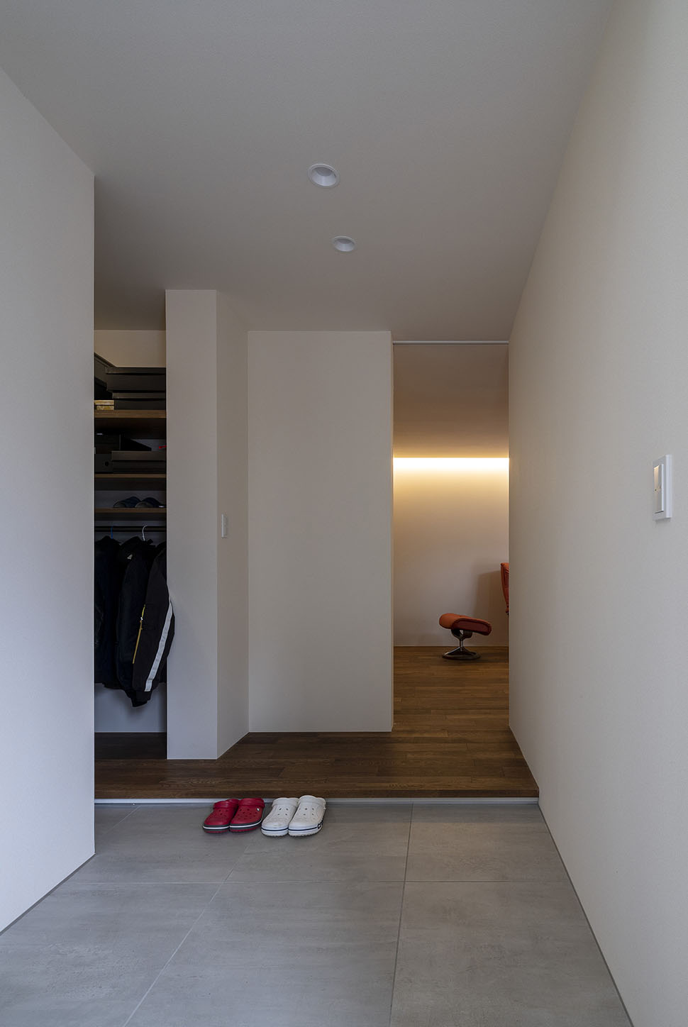 1階の生活感を極力抑えようと生活に必要なモノは収納し視界から外すように意識したと言う。玄関クローゼットにはアウターを、出張や海外旅行が多いご夫婦のキャリーバッグも1階収納にと、それぞれ外見上からの距離をとって収められている。