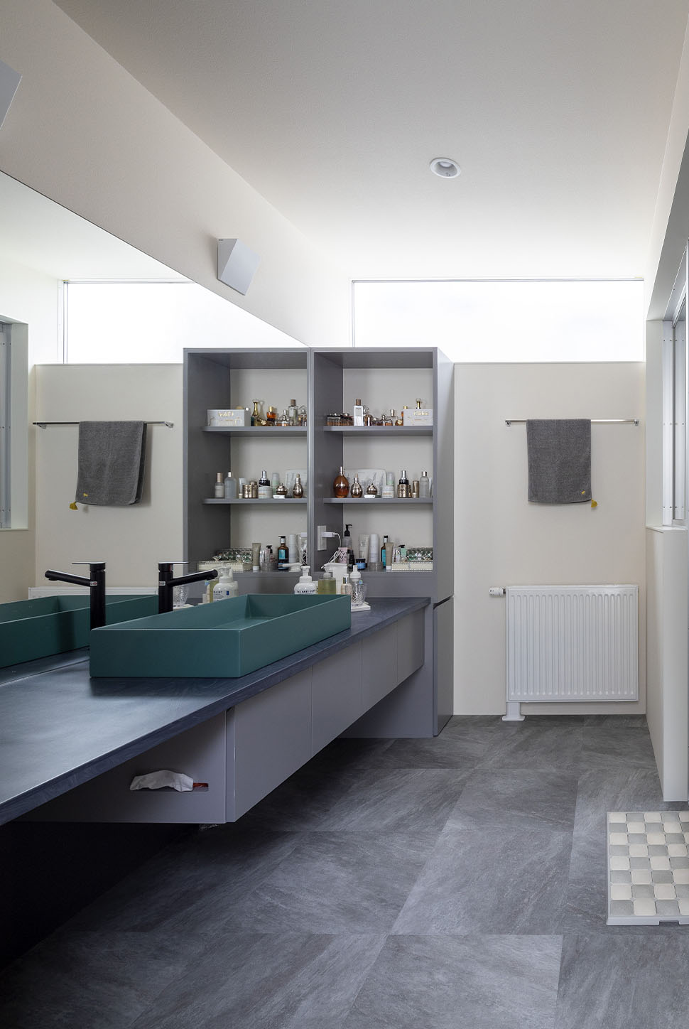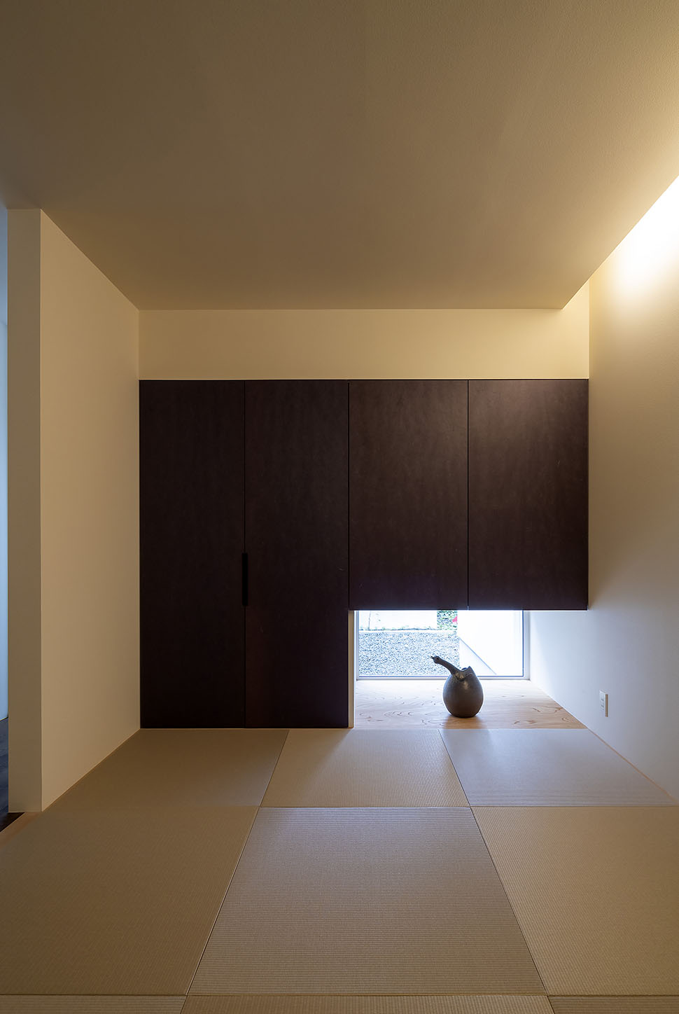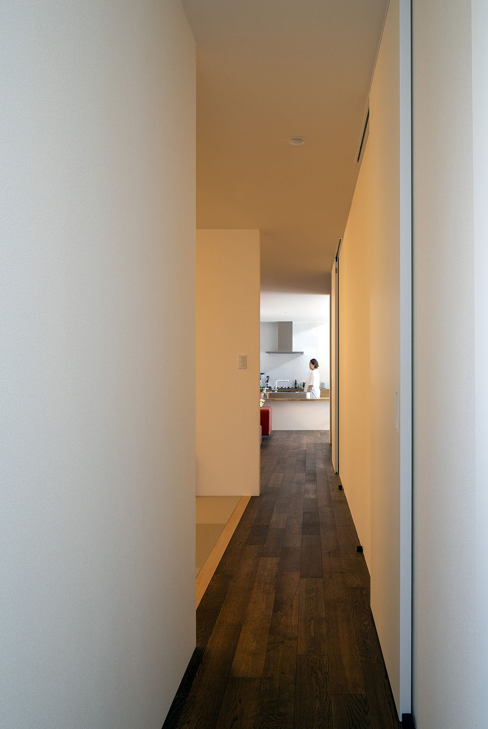1階の生活感を極力抑えようと生活に必要なモノは収納し視界から外すように意識したと言う。玄関クローゼットにはアウターを、出張や海外旅行が多いご夫婦のキャリーバッグも1階収納にと、それぞれ外見上からの距離をとって収められている。
