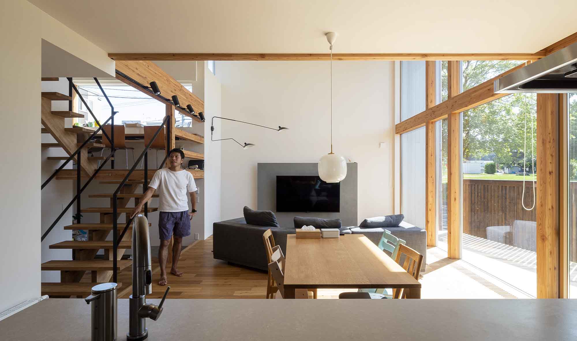 「その頃は道外勤務でリモートワークにシフトしていました。その後、地元に戻りながら在宅勤務が継続され、家が出来上がるとほぼ同時期に転勤も決まったりと、慌ただしい時期でした。 今も在宅勤務が主ではありますが、子どもと一緒にいる時間や子どもの勉強を見たりと、この家での暮らしに幸せを感じながら過ごしています。」