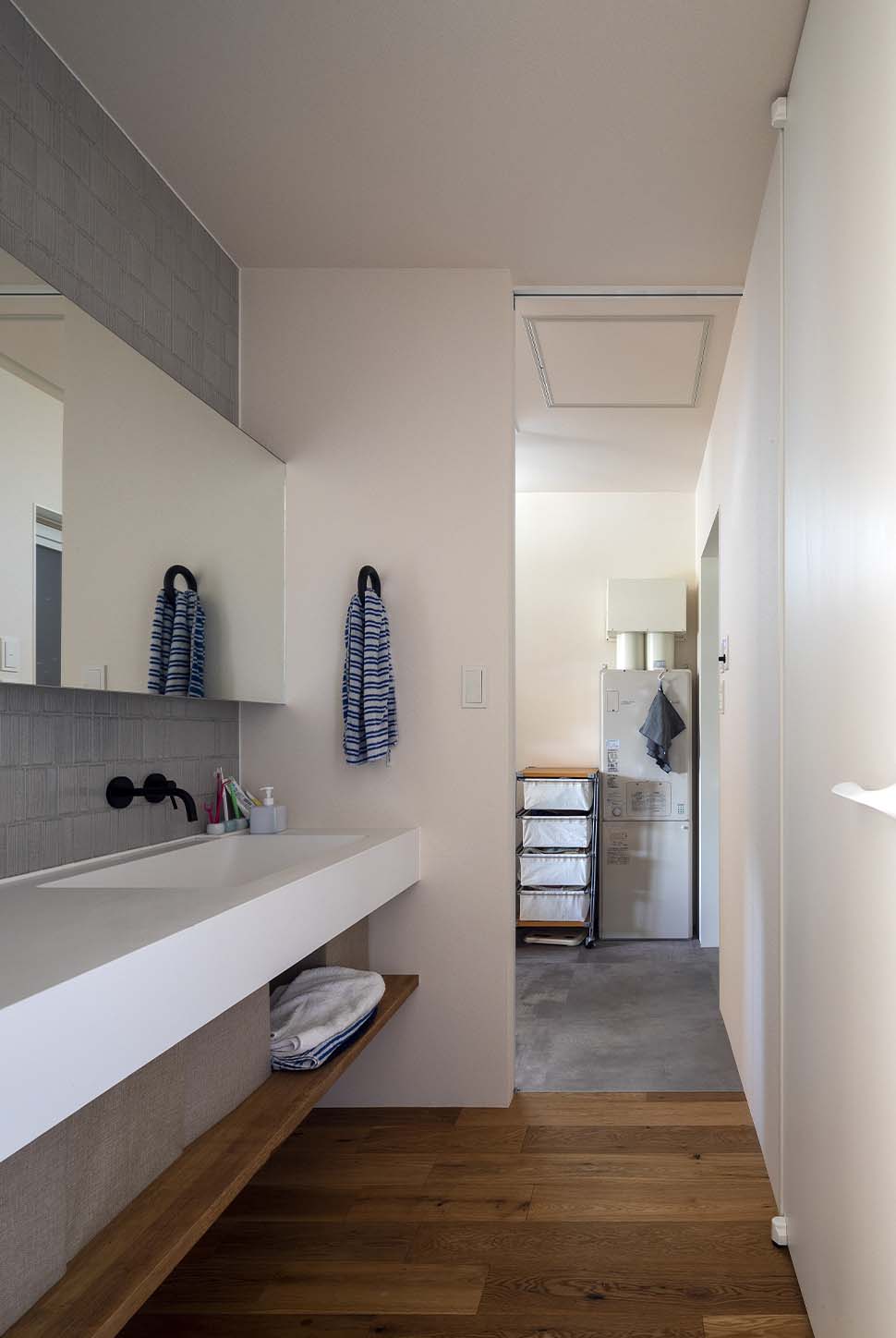 家族の暮らしとお仕事への利便性も考えて見つかった敷地は、緑豊かな公園を目の当たりにする角地で、少し歩けば小魚が泳ぐ小川もある羨ましすぎる環境だ。