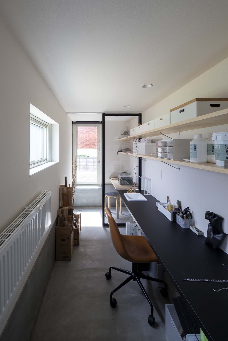 キッチンから洗濯・物干しまでの家事動線、階段の段差を利用したロフト、以前よりも注ぐたっぷりの光。1階には寝室と奥様の工房スペースをつくった。冬のバルコニーは雪遊びの場となるらしい。 テレビを見なくなったというご夫婦から、充実した暮らしぶりがうかがえた。