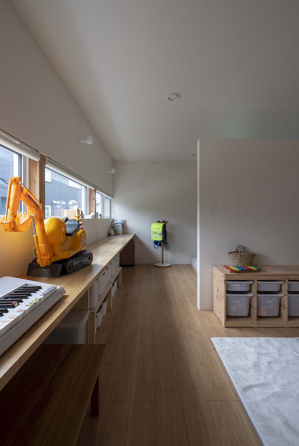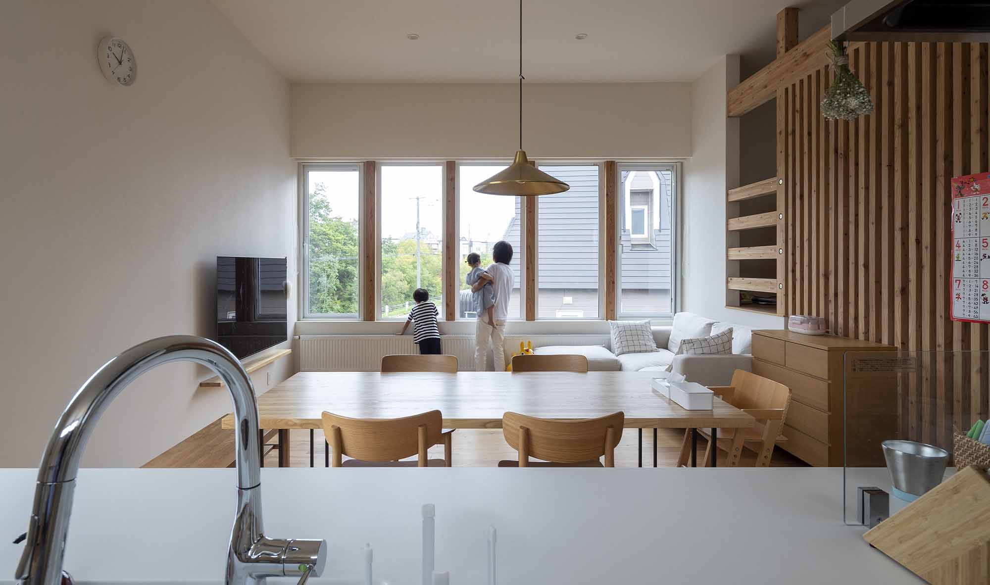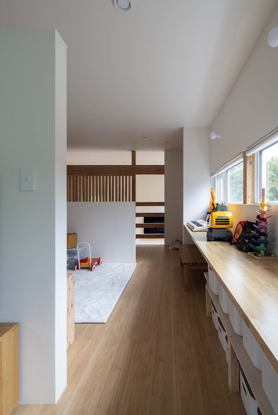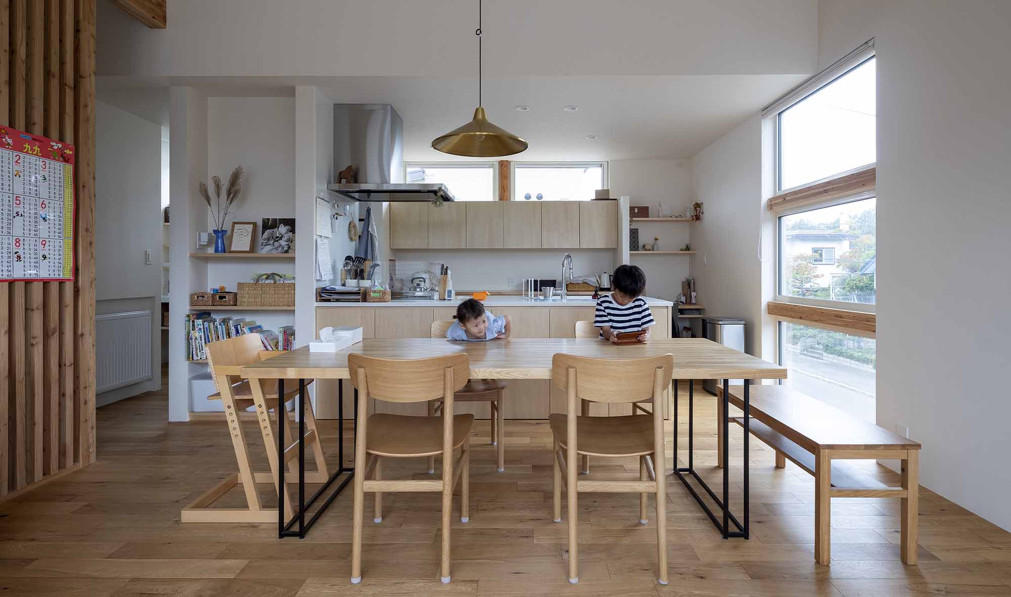 2世帯住宅とはいえ玄関も共用、食事もみんなで一緒に。子どもスペースが2階にあるのに「いつもリビングで遊んでいます」と、家族がいつも触れ合っているさまがうかがえる。