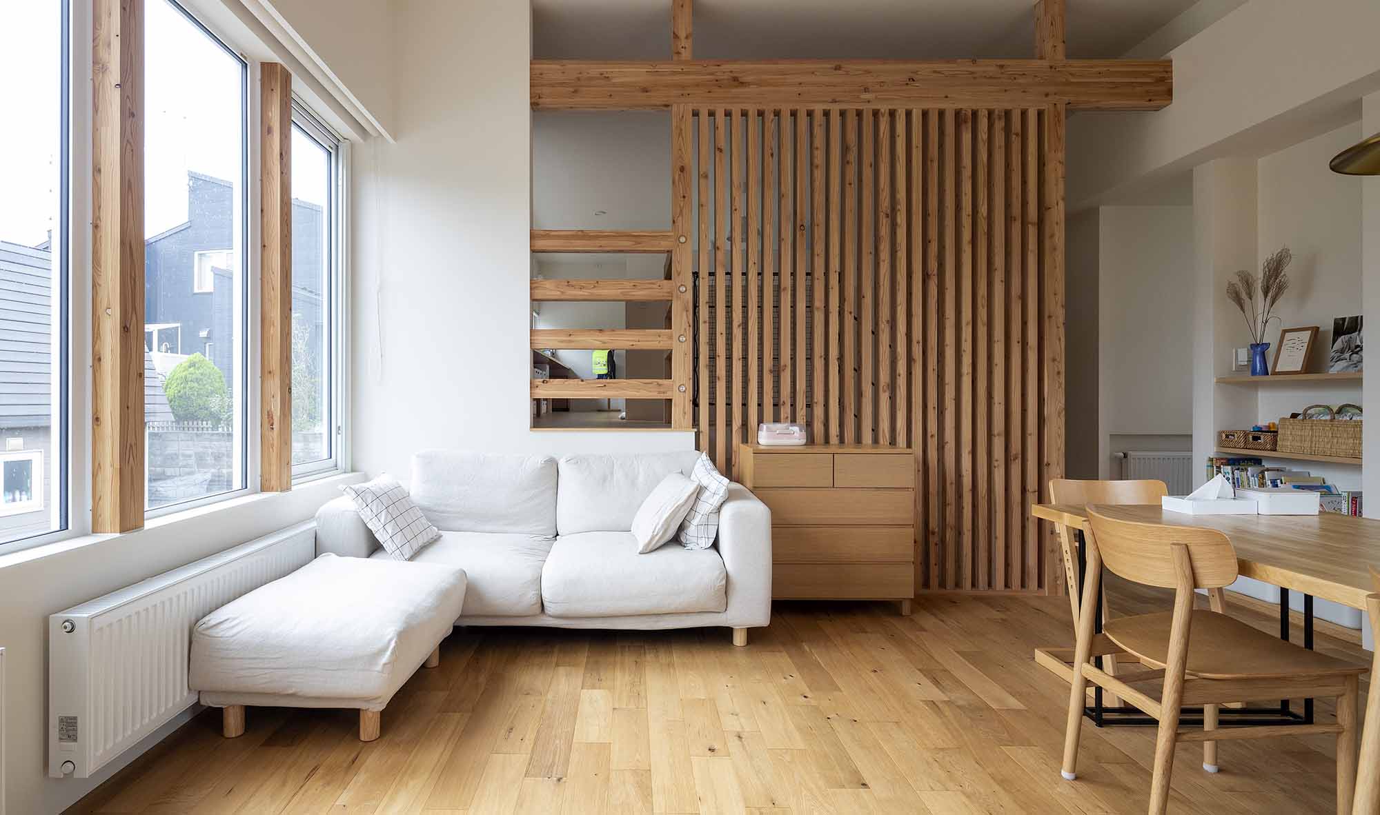 いくつかの会社に相談しながらも、「やっぱりミライエの雰囲気が忘れられなくて、最後にもう一度だけ相談しました」といってできあがった家は祖母の家を建て替えた2世帯住宅。