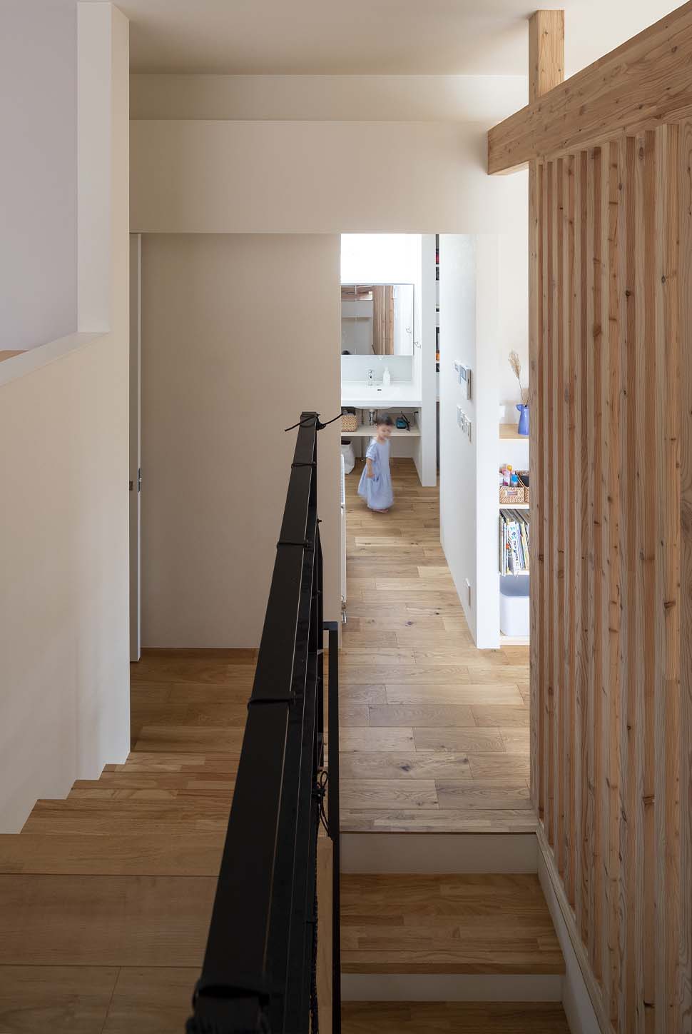 「いつもホームページで見ていたので、きっと暮らしやすい家になるだろうなぁと思っていました。洗濯機を扉で隠し、洗濯と物干しのスペース、それと帰宅後すぐに着替えやお風呂に入れる動線。より使いやすさを実感している毎日です」