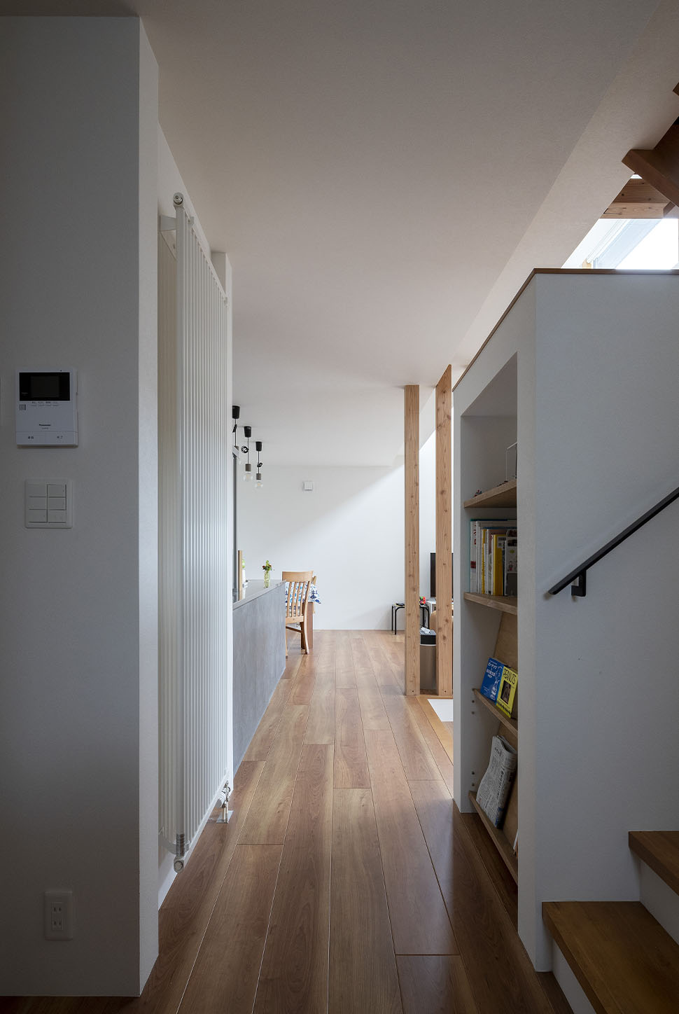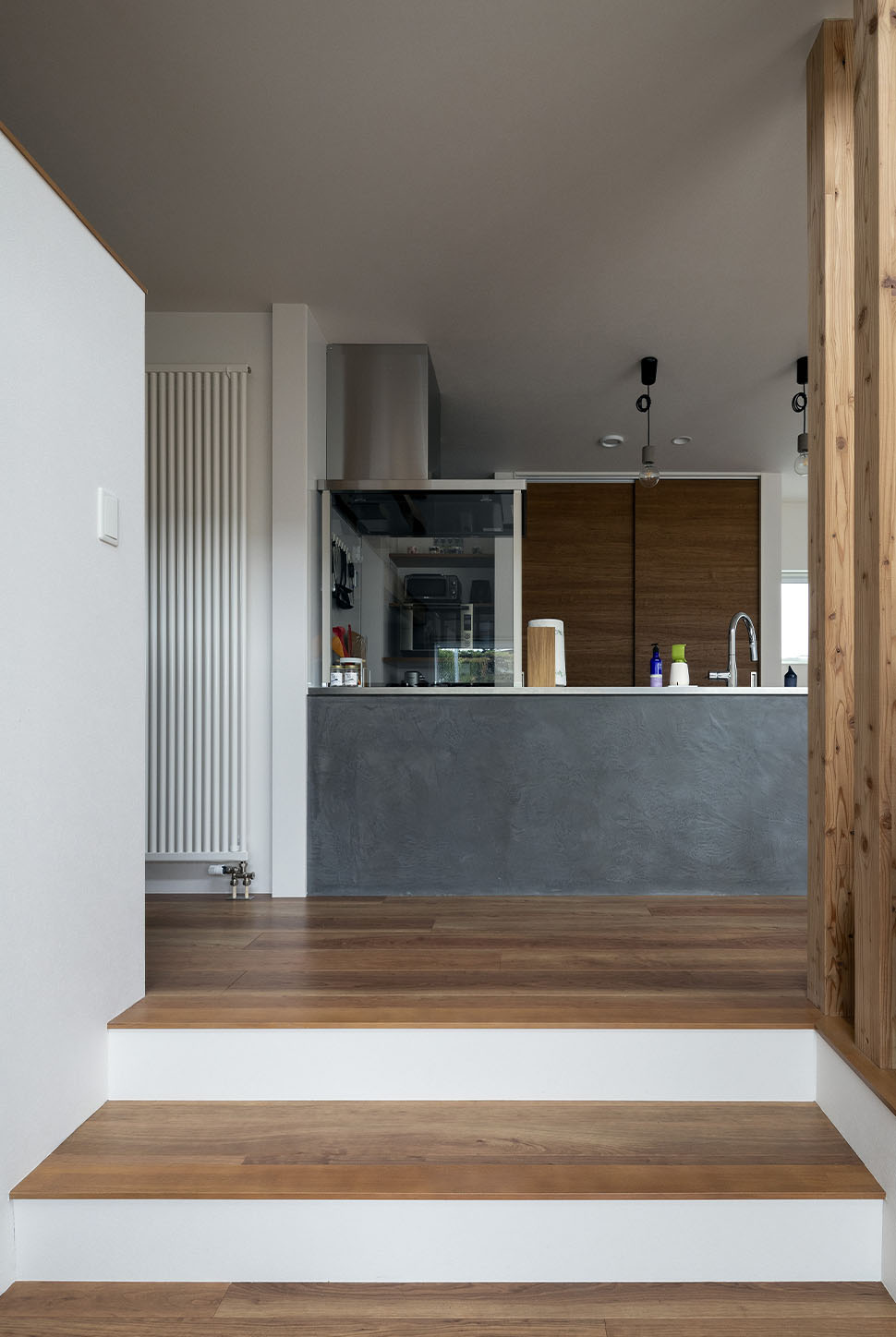 「キッチンを含めた家事動線は、スムーズに動けるくらいのゆとりが欲しいと伝えました。やっぱり私が一番使う場所ですし」奥様からの要望への回答は当初より50mm広く950mmの通路幅とした。わずか5センチであるが「すれ違いにも支障がなく快適です」と。実際に暮らしてみると、数値以上のゆとりを感じる毎日だ。