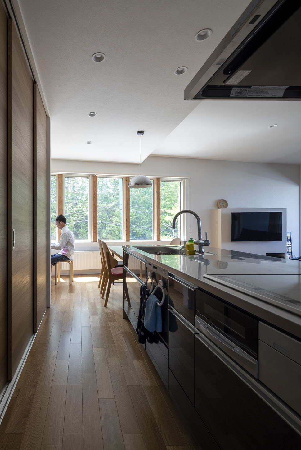 「使いやすさもそうですが、まだ子どもが小さいので何かをやりながら、家のこと全体が見れるのがいいですね。 木がつながっているような空間です」