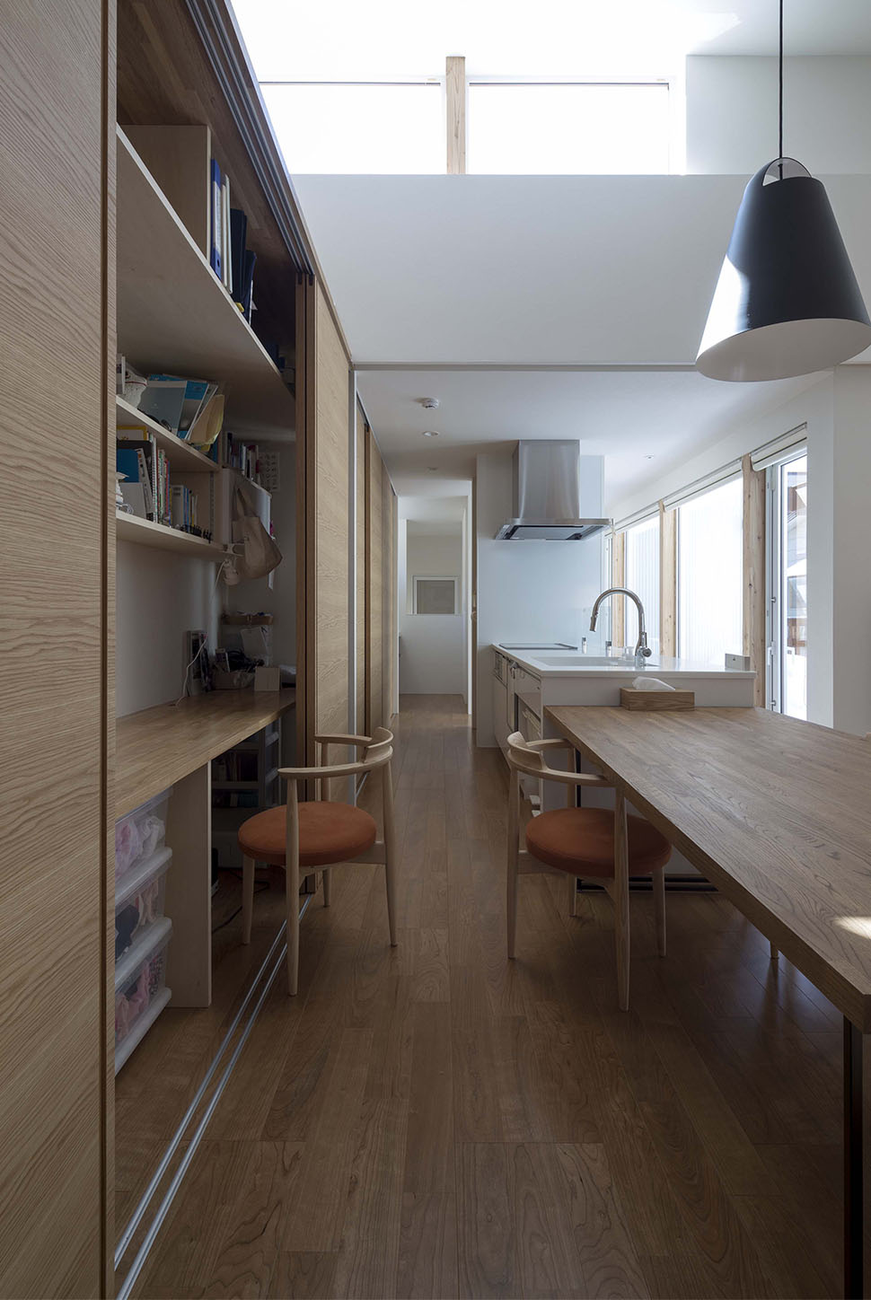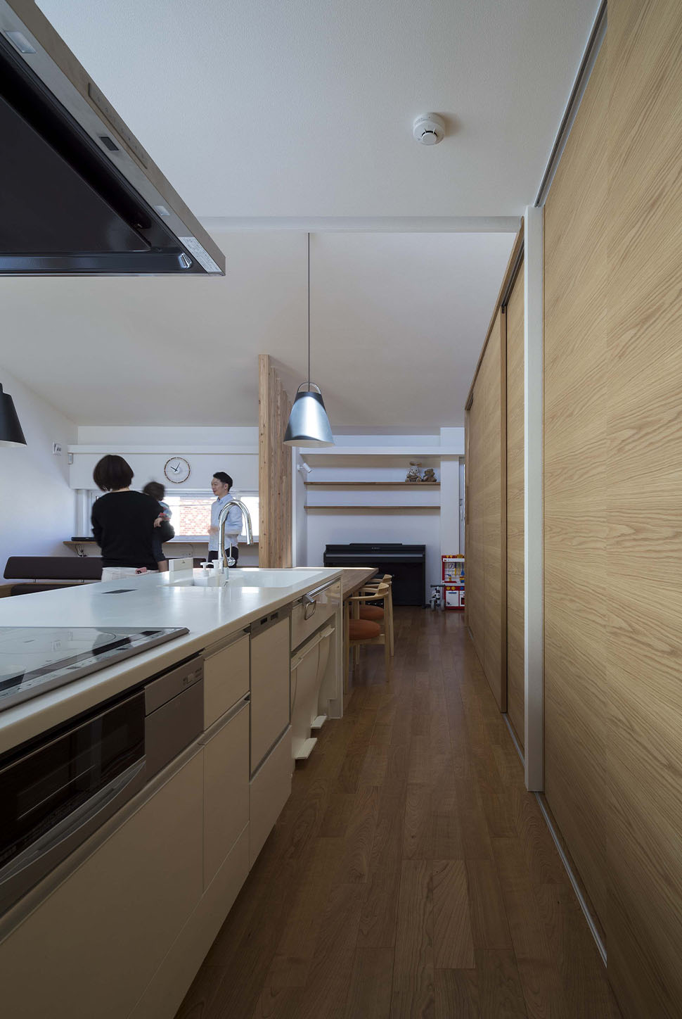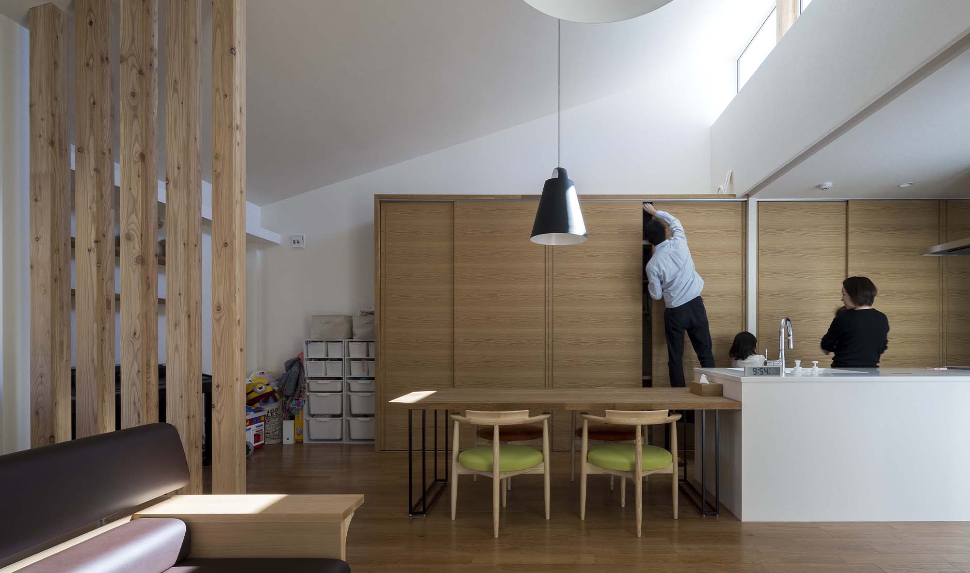 来客時にも「きれいな状態」で対応できる。それだけではなく、扉を開けば「家族一人ずつの机」に早変わりだ。