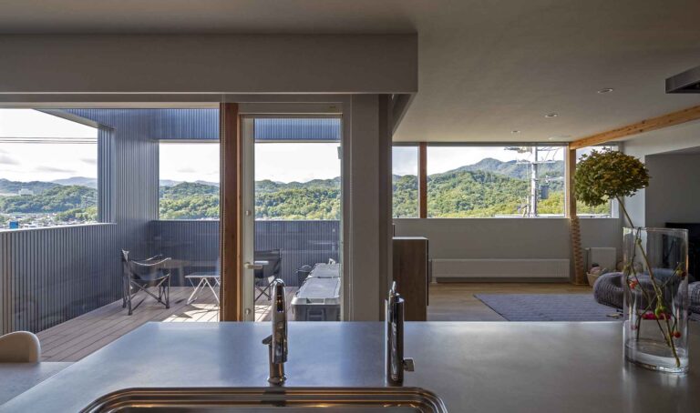 もう一方店舗については、お気に入りだった海外のカフェの雰囲気をベースにデザインを組み立てつつ、自身が現場に立つ動線と、仕事をする上での機能を重視して折り合いをつけていった。リビングは「着付けのスペースとしても利用」している。