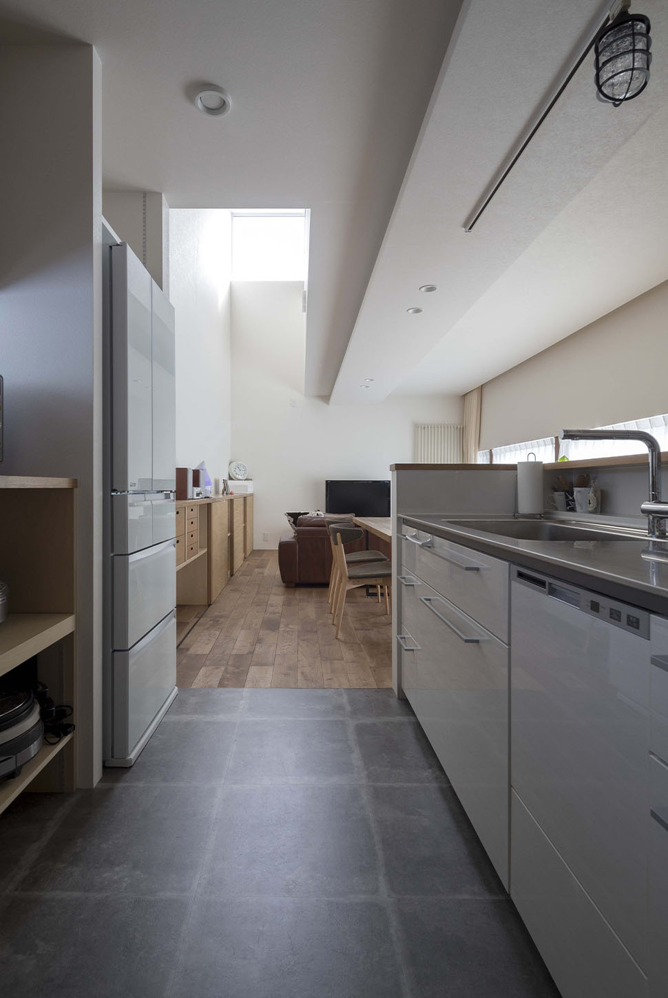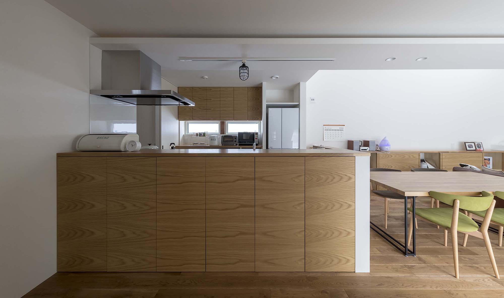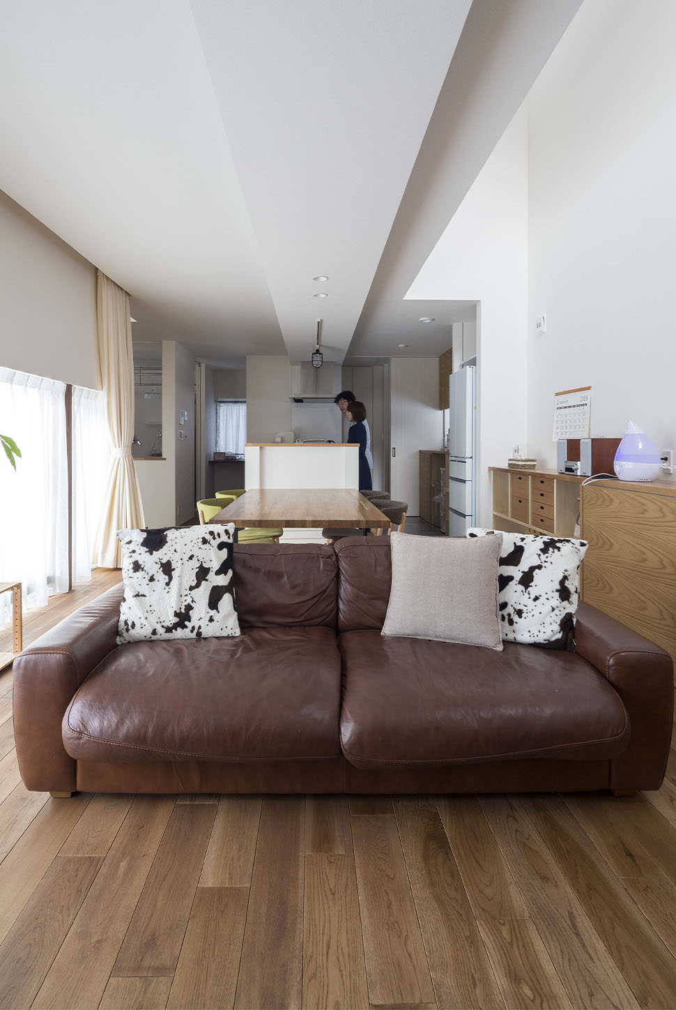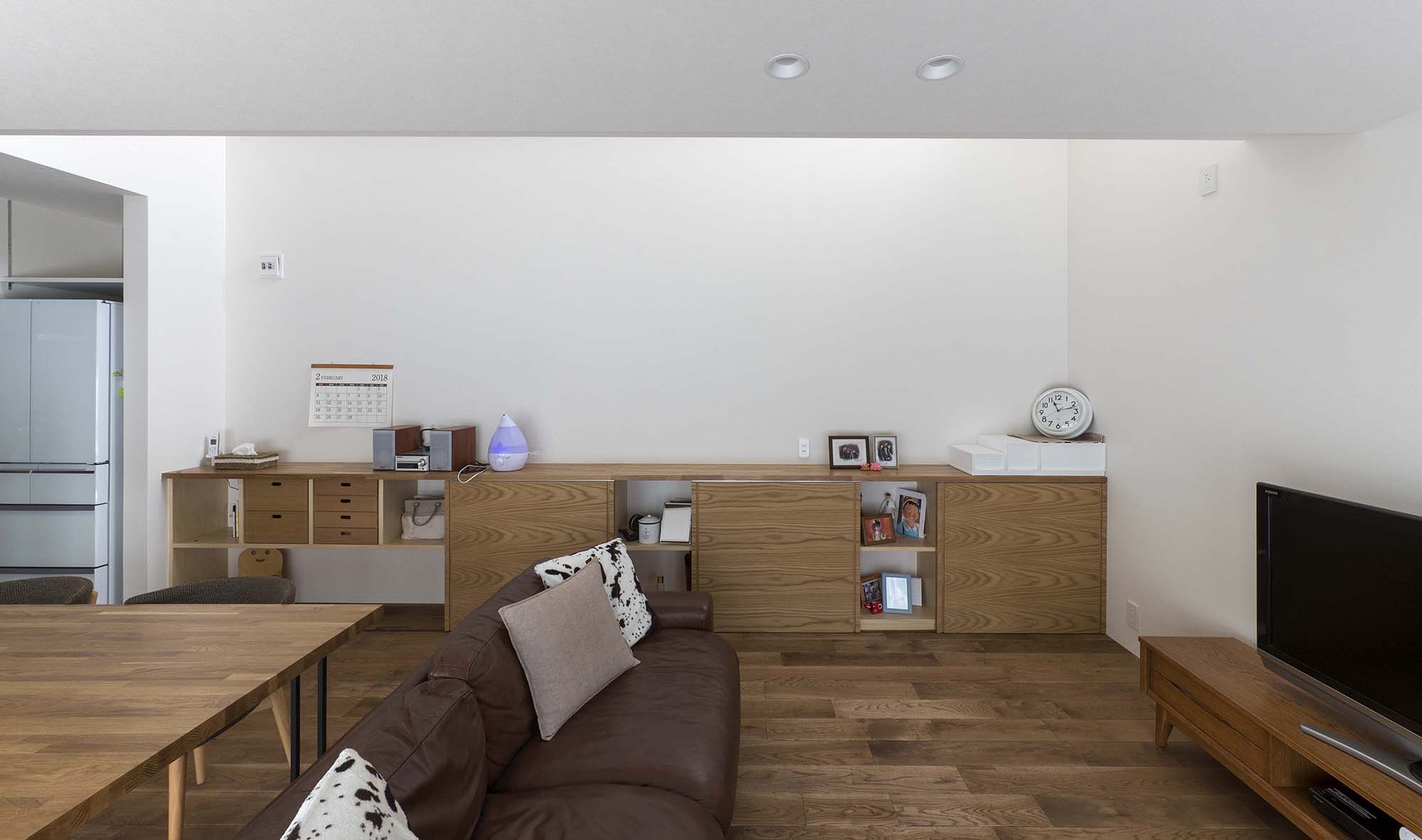 キッチンから室内全体を見渡せるリビング、