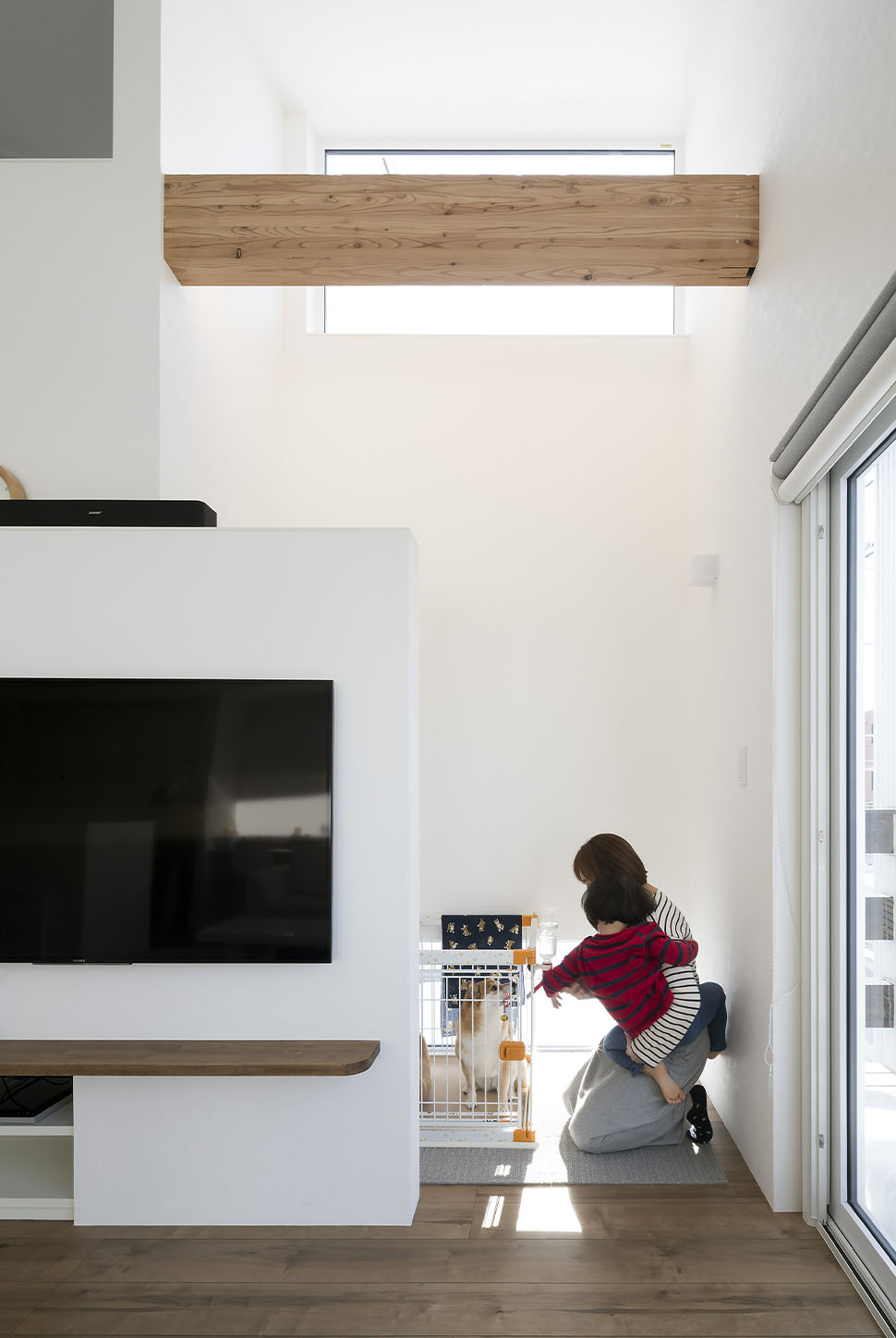 スキップフロアの下に愛犬の場所をつくりたかったという要望であったが、結果は全く違う場所につくられたのはご愛嬌だ。