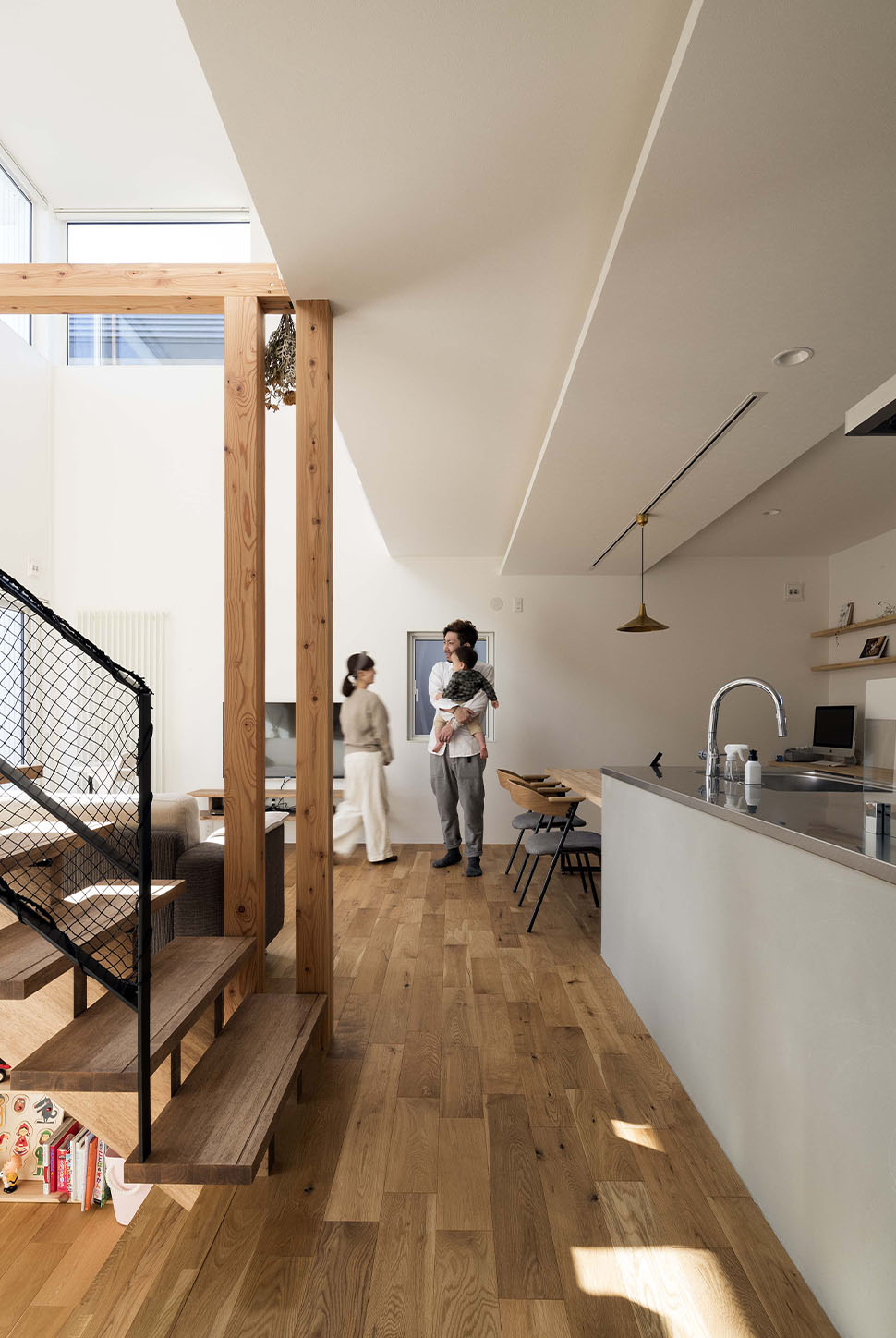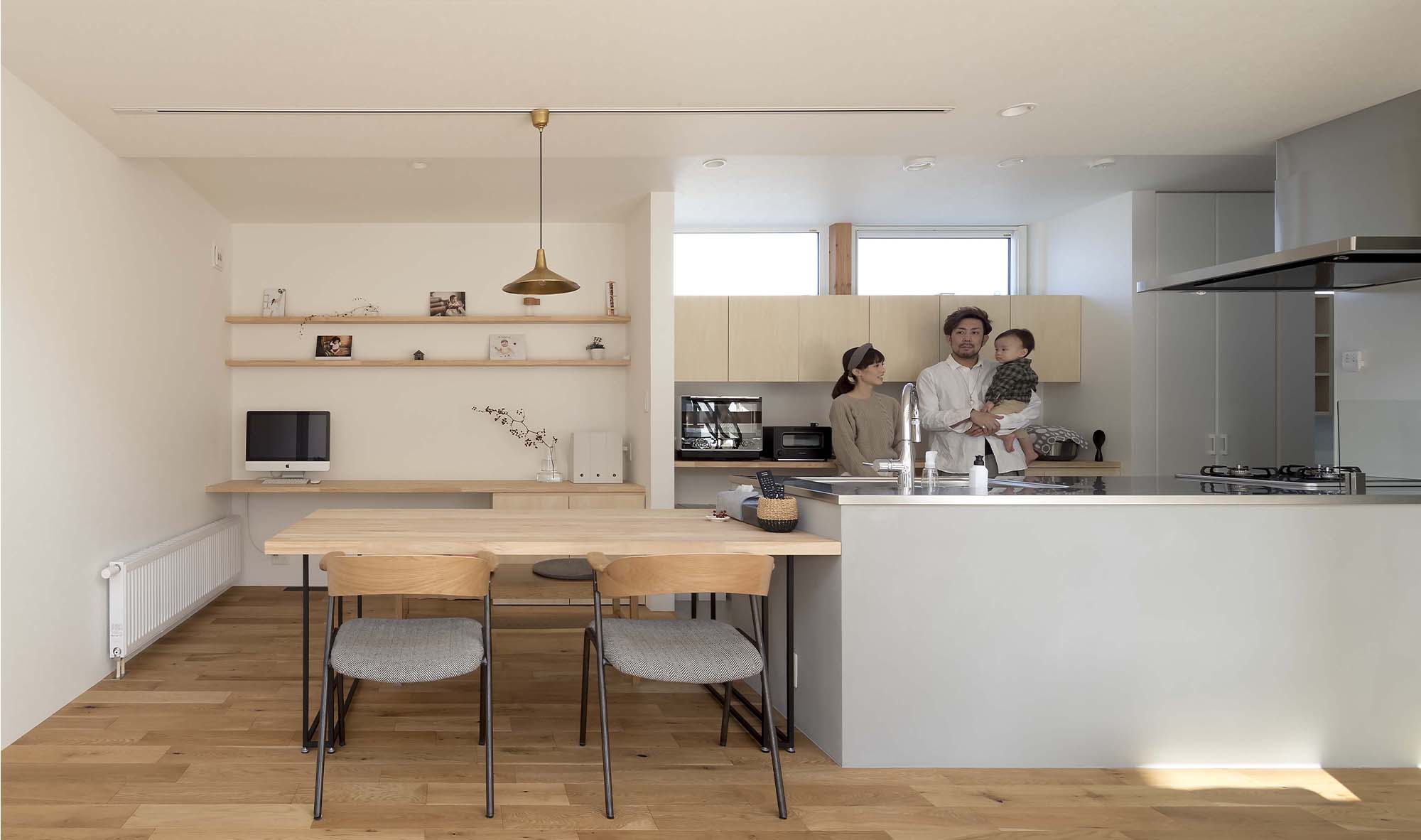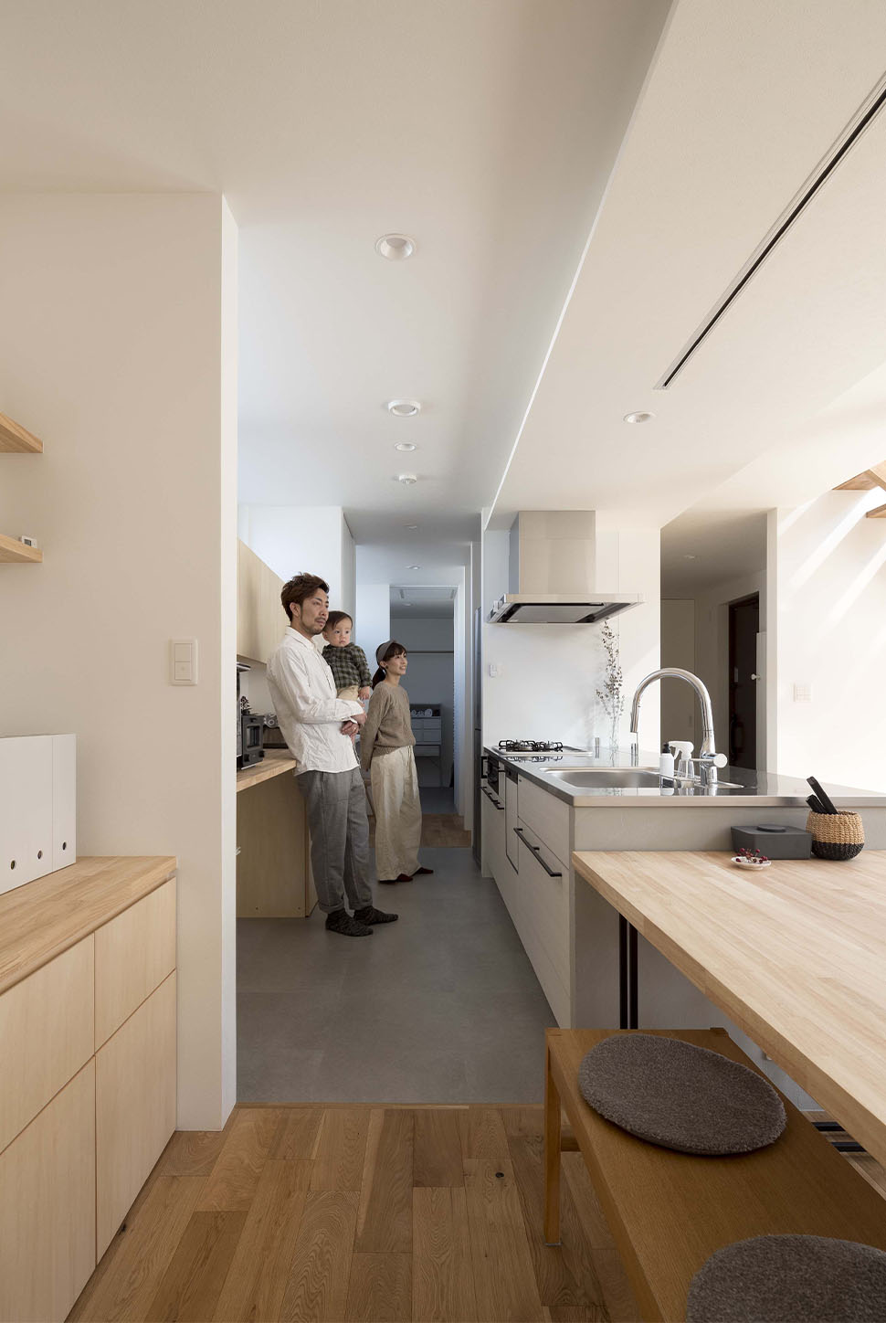 「木質感は好きなのですが、強すぎるのは避けたいと思っていました。また、キッチンから室内全体を見渡したい、という要望をしました。子どもが遊んでいる、夫が寛いでいる、そんな情景を感じながら生活したいと思っていたので。」
