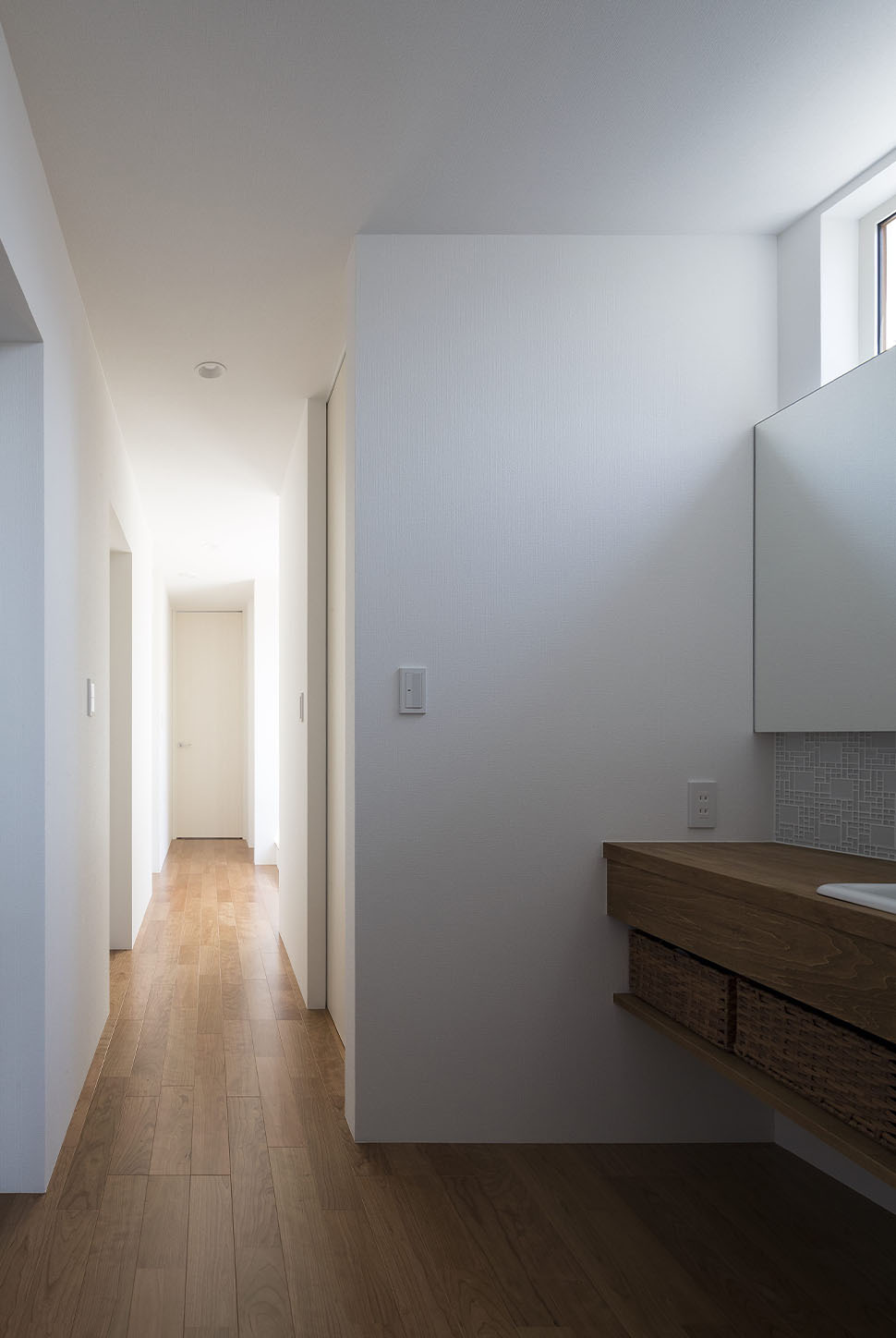 随所に見られる左官仕上げの壁とタイルが、やさしい印象をもたらしてくれている一邸だ。